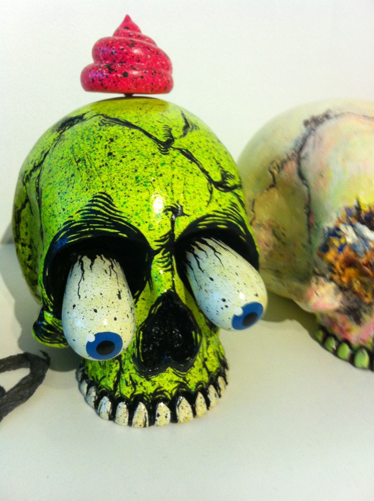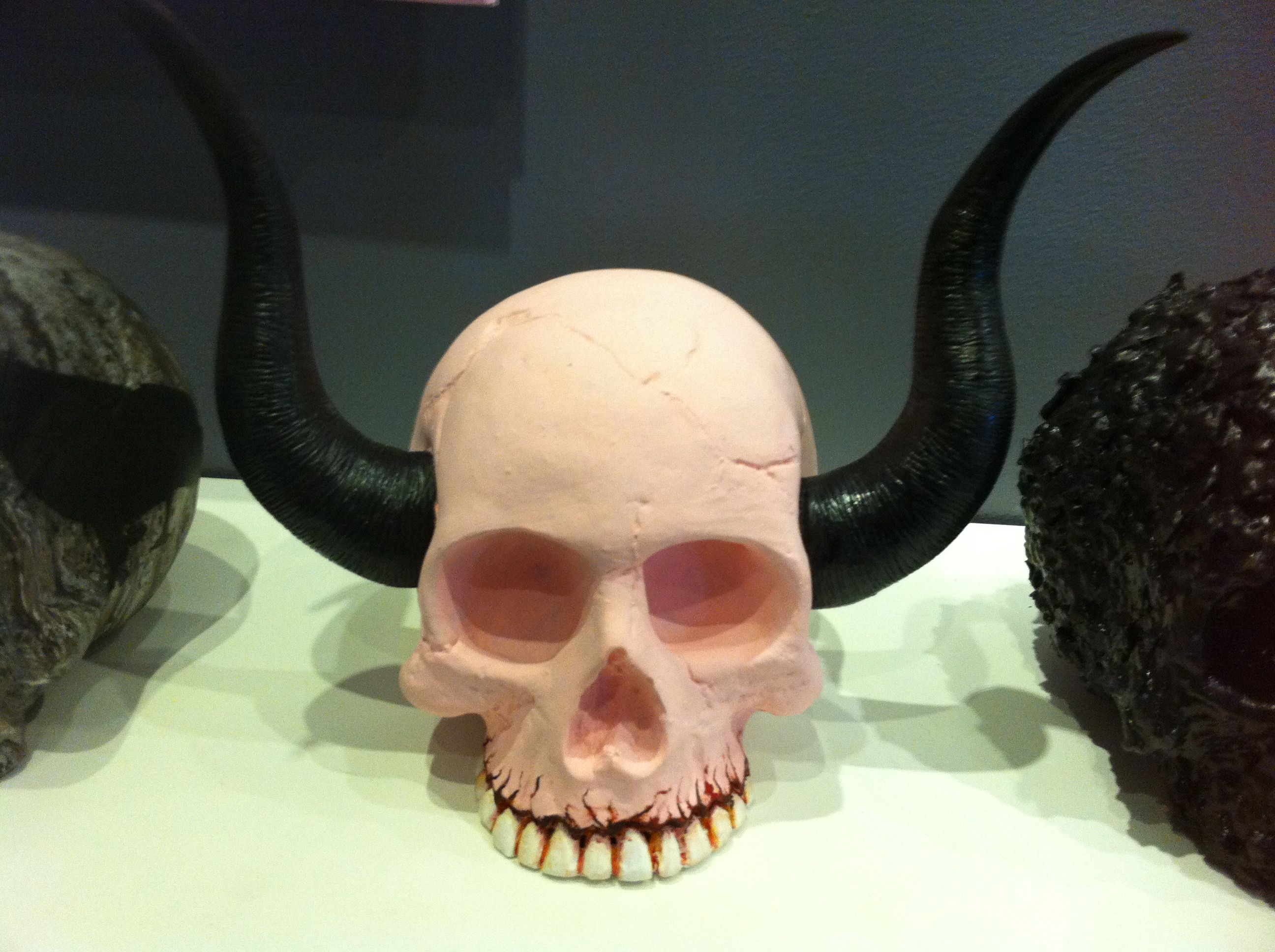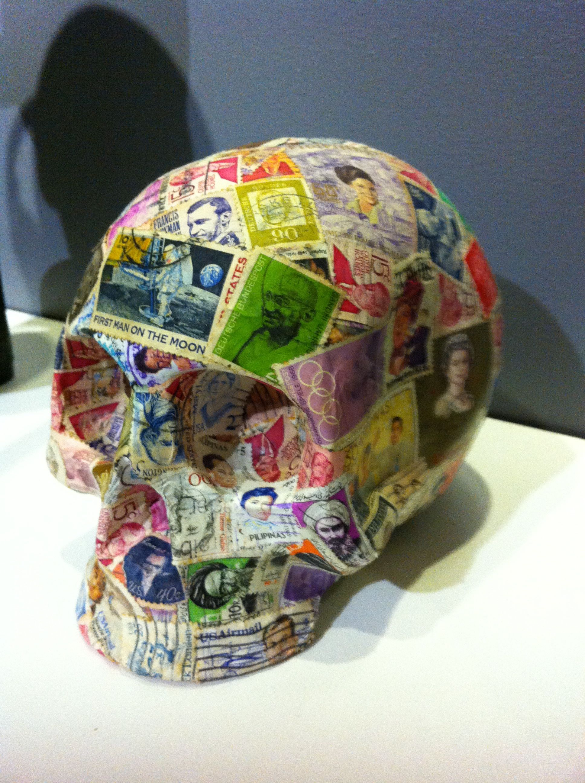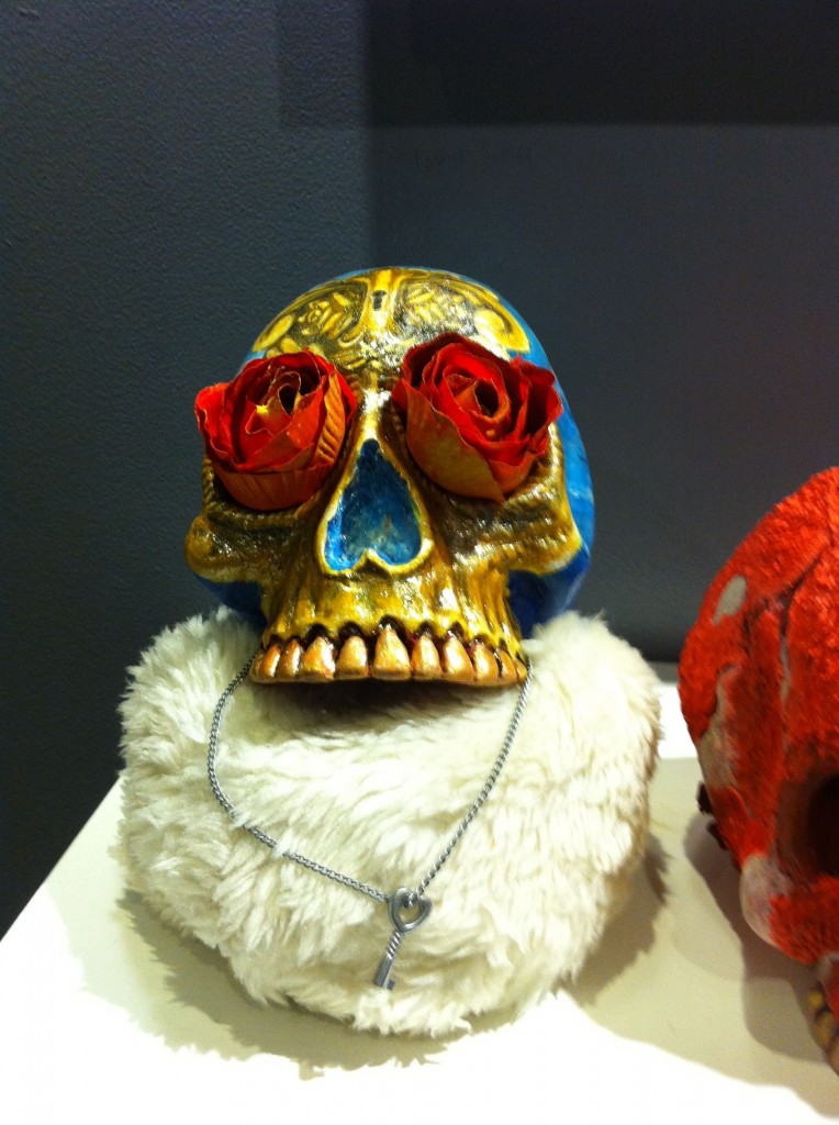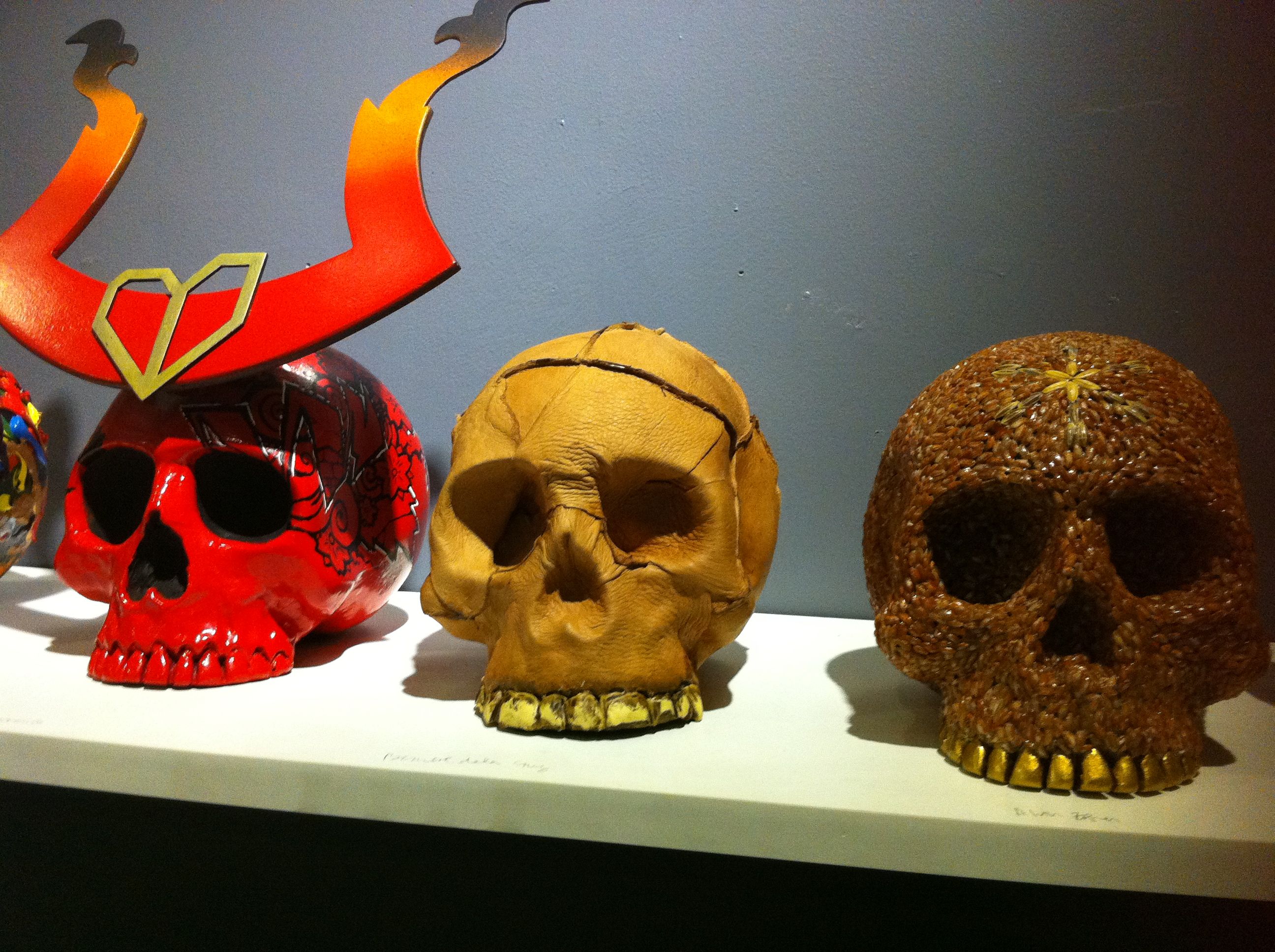 The skull must be to us as the peace sign was to the hippies and rebels of the 1960s and 70s.  We see it everywhere, on everything. The visual arts, especially, has adopted it an all manner of works.  Damien Hirst’s For The Love of God counts as one of the more notorious ones in recent history, platinum cast and encrusted in diamonds, priced at close to $100 million dollars.  Unfazed by the controversy created by the sale (or non-sale, depending on which report one subscribes to), the artist made another one, this time using the cast of an infant’s skull, to inaugurate the Gagosian Gallery’s Hong Kong branch early this year.  He called this second version For Heaven’s Sake.