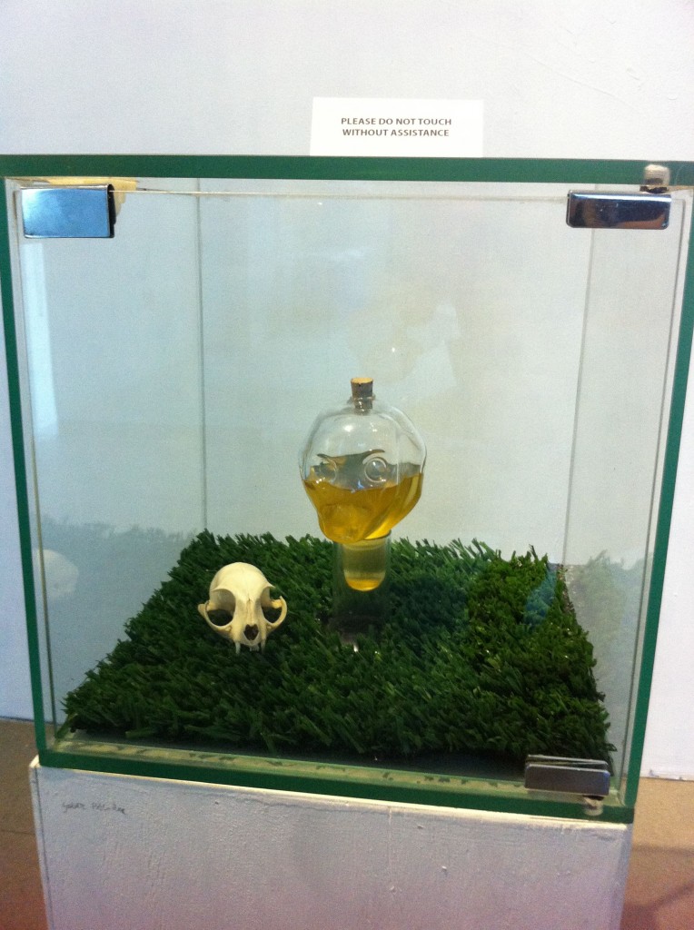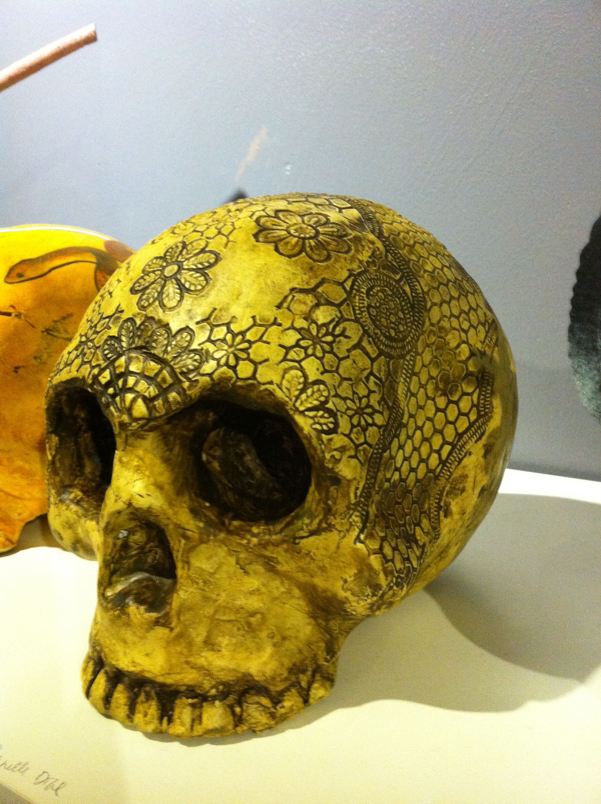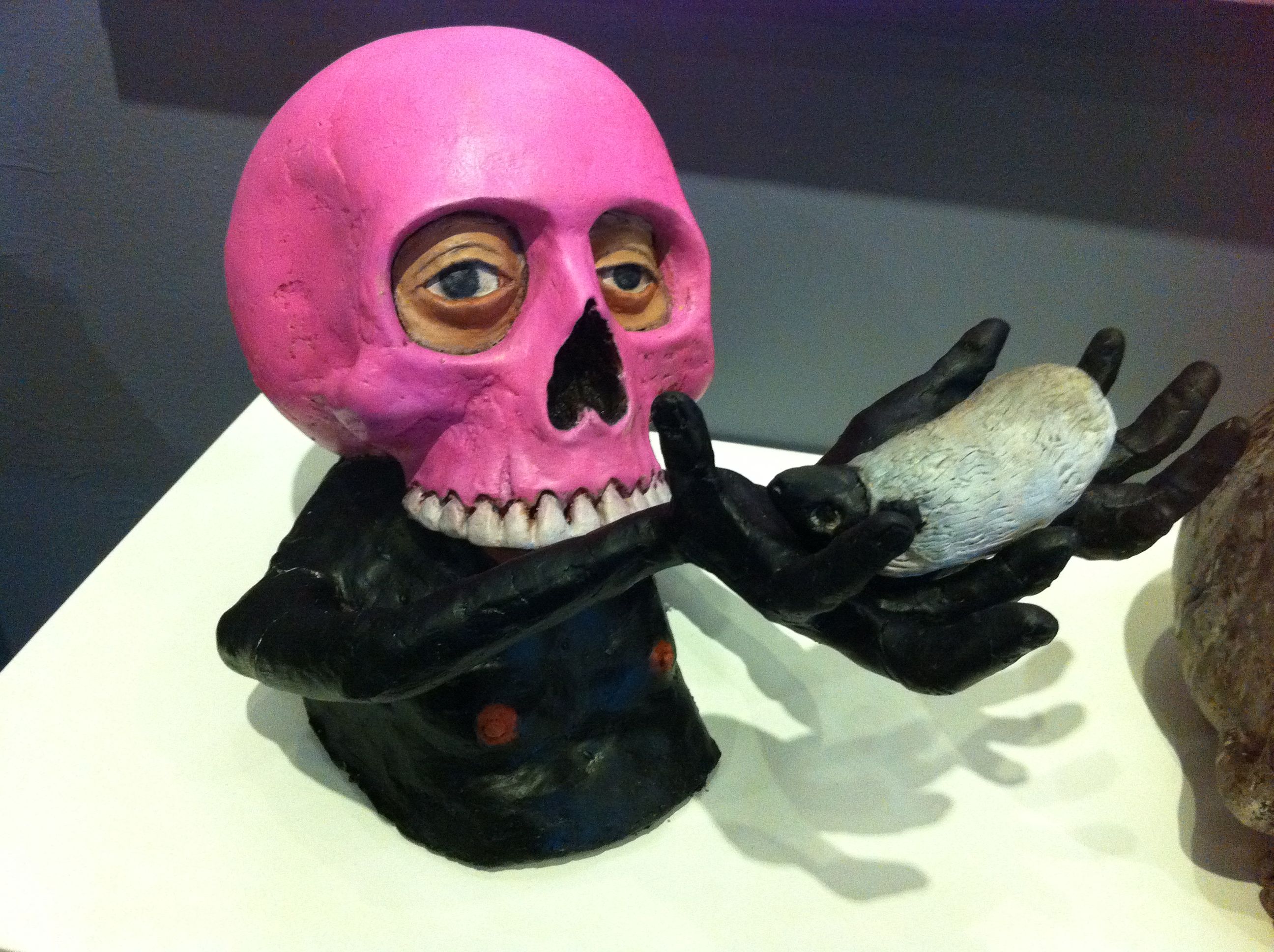 According to the exhibit notes, Dia delos Muertos, the exhibit’s title, harks to the Mexican celebration of All Soul’s Day, their version of our Araw ng Patay.  Obviously, using skulls as symbols of death, reminders of our mortality, smacks of cliché. But when you witness the variety spread out in the gallery, you can’t help but enjoy the spectacle.  After all, death, like life, can’t be taken too seriously.