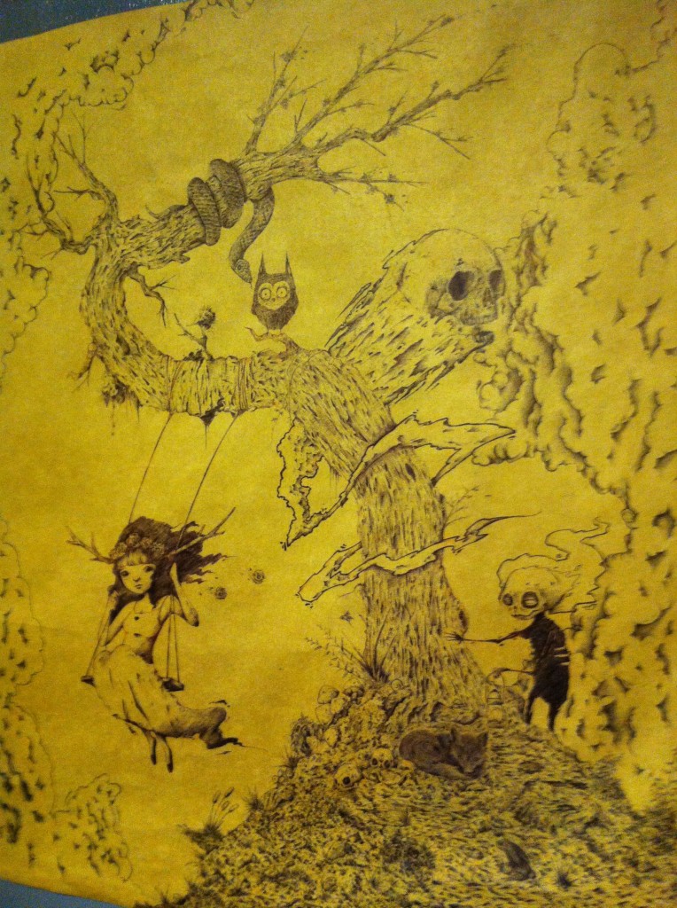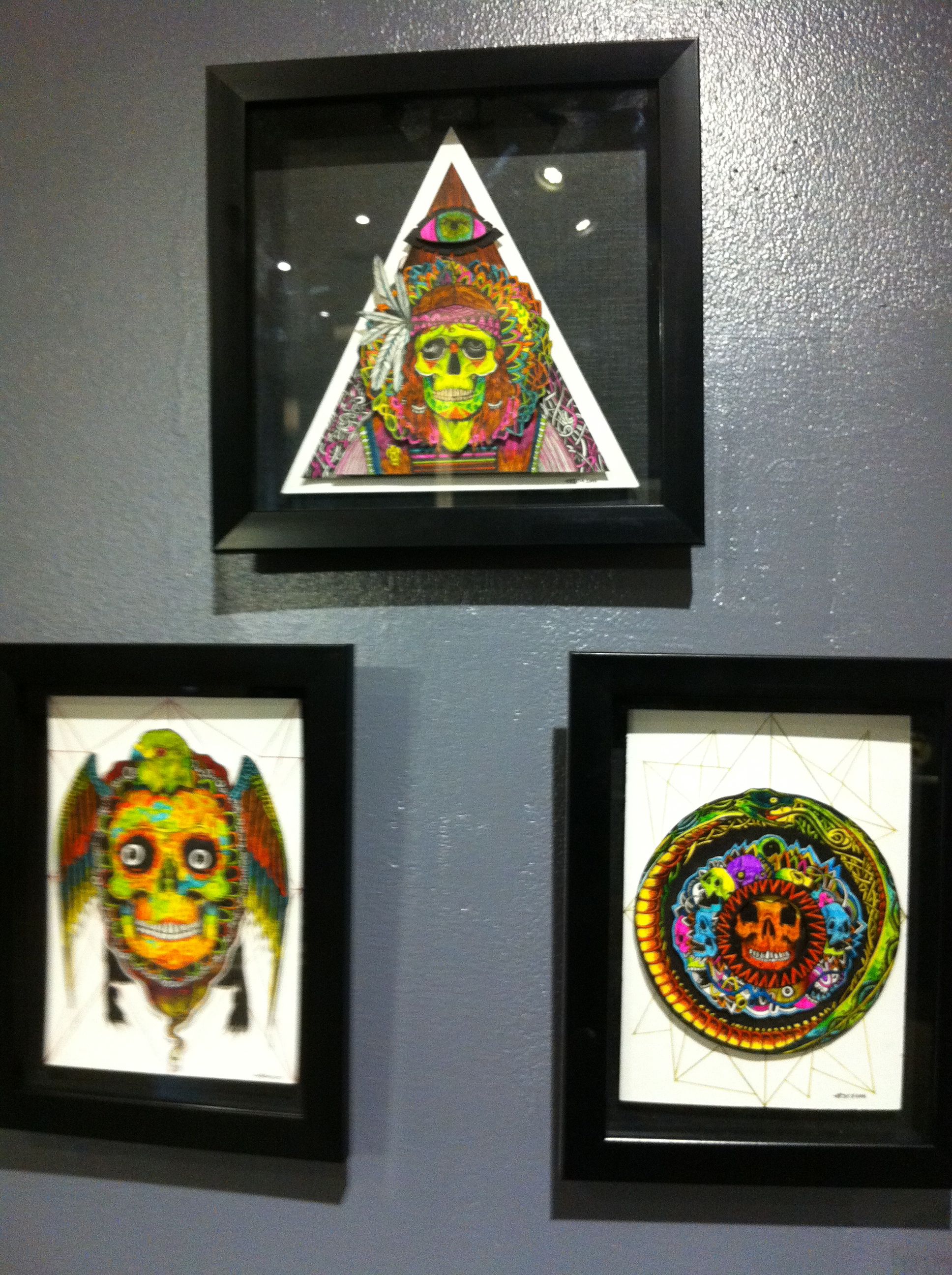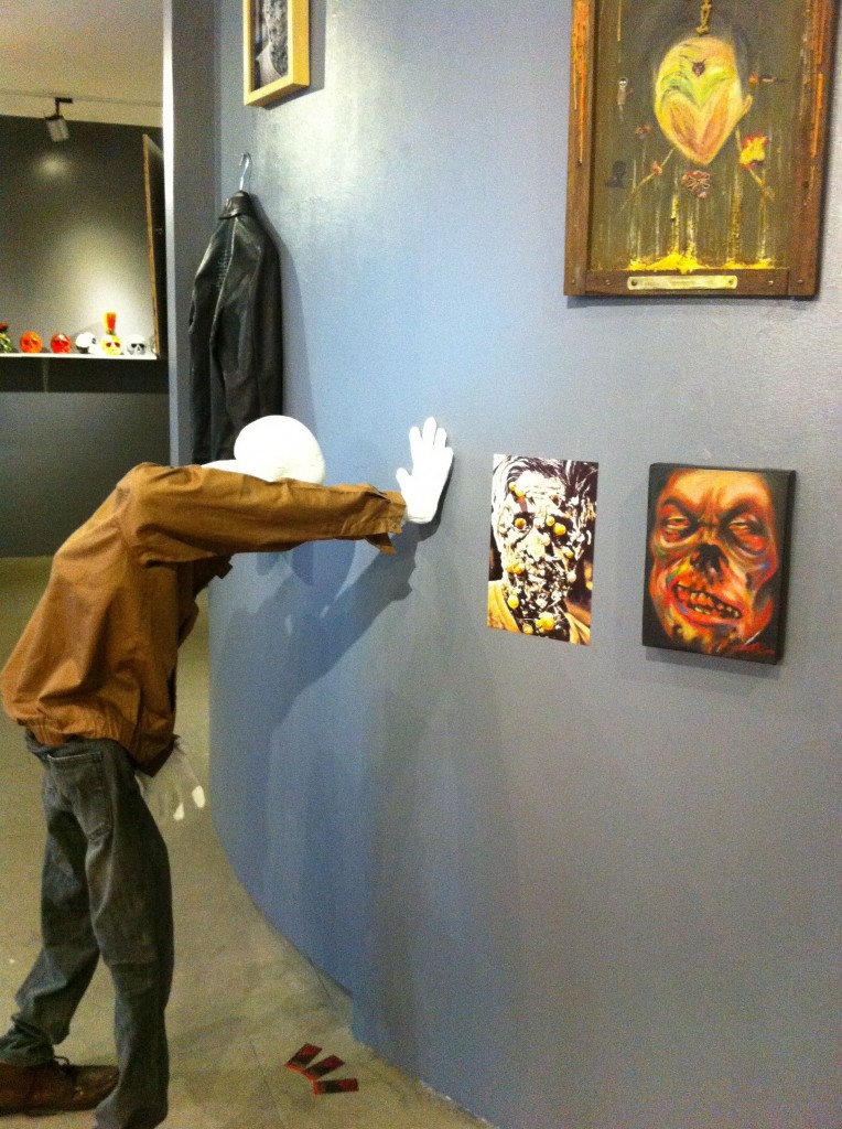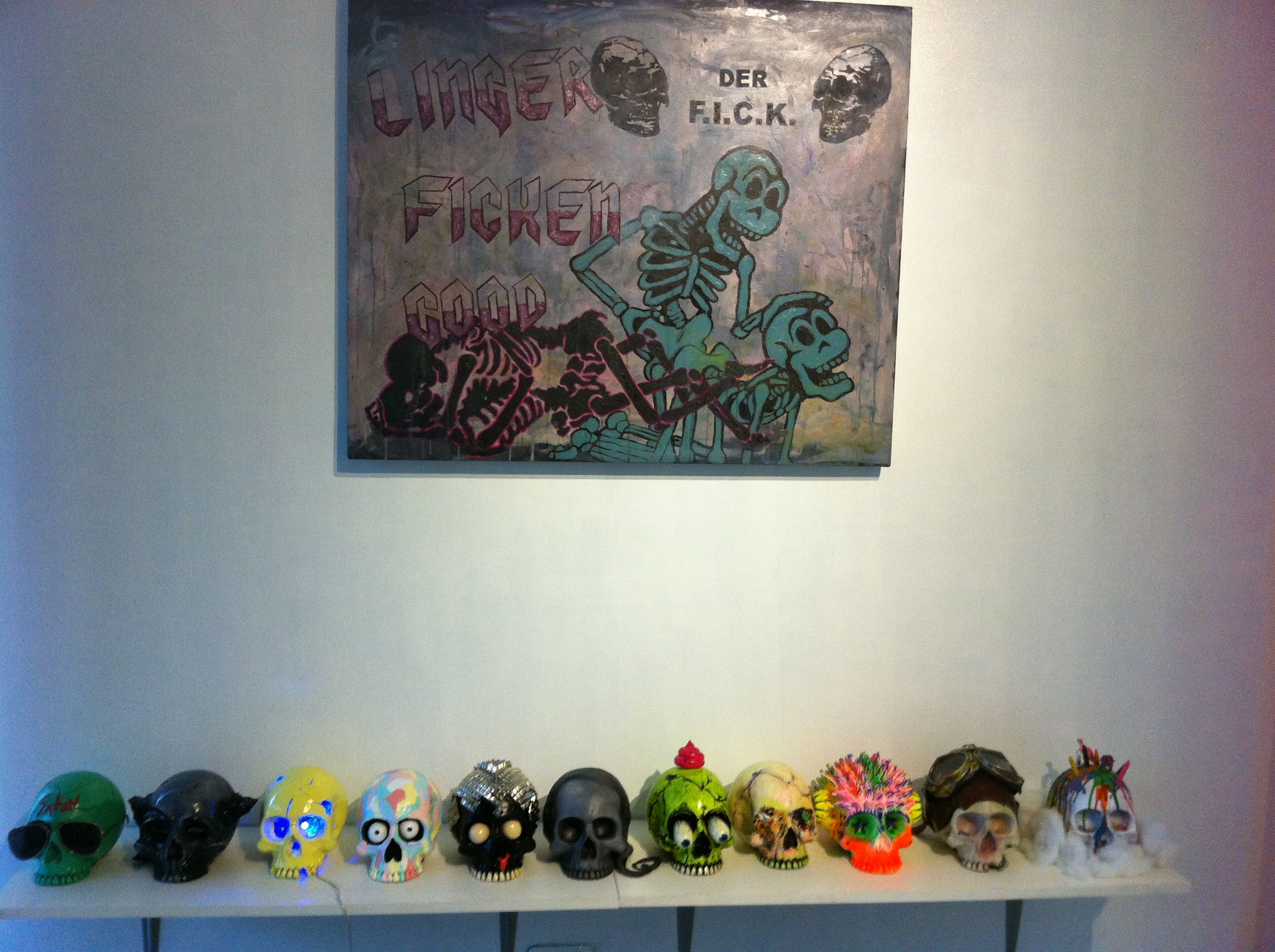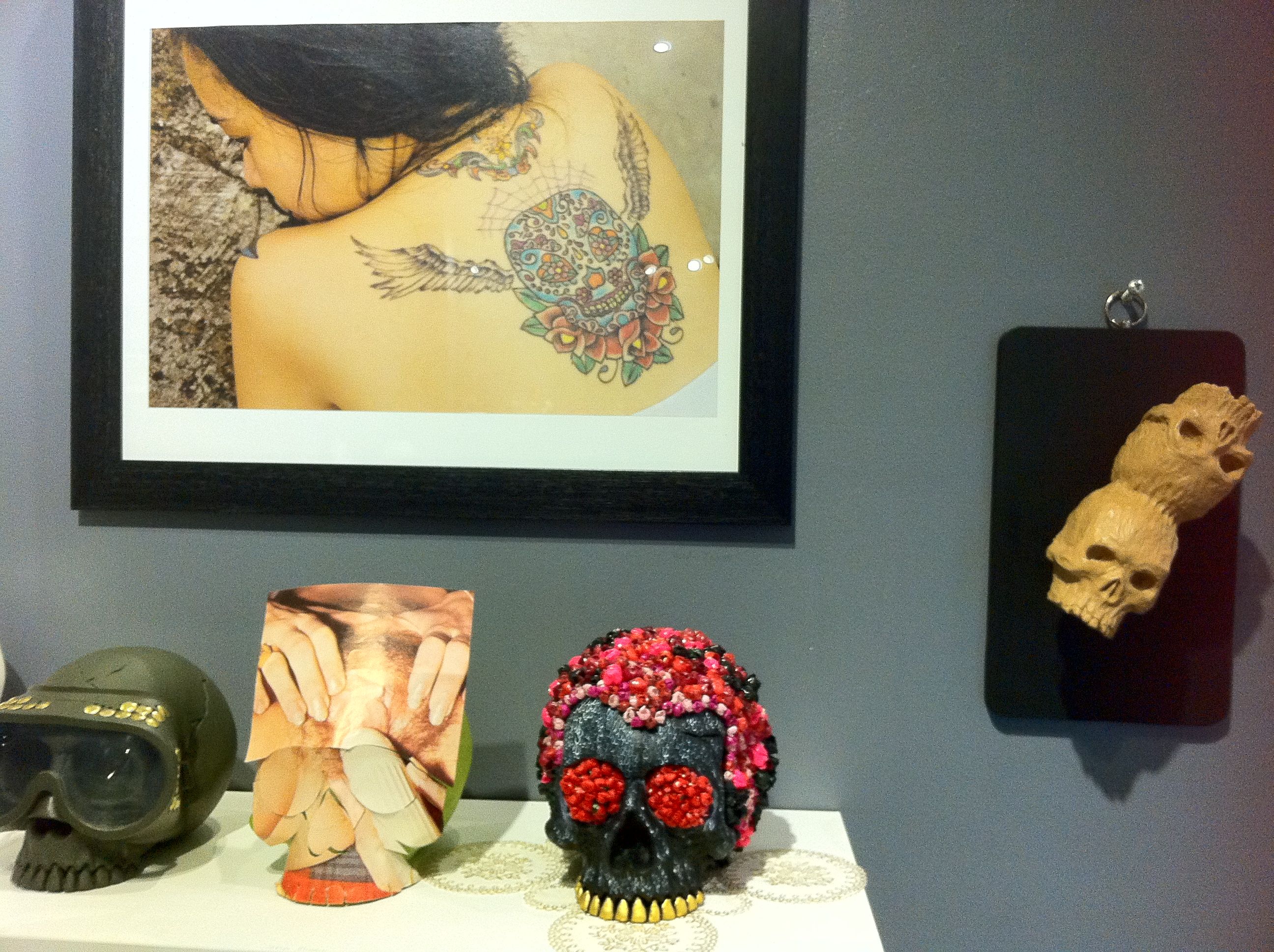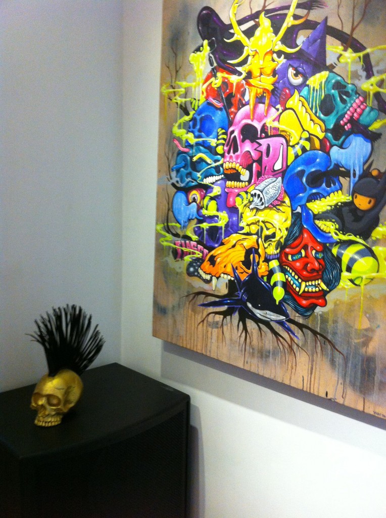 Skulls on the table by Sonny Sunga, Jayson Oliveria, and Ryan Villamael. On the wall by Jacob Lindo