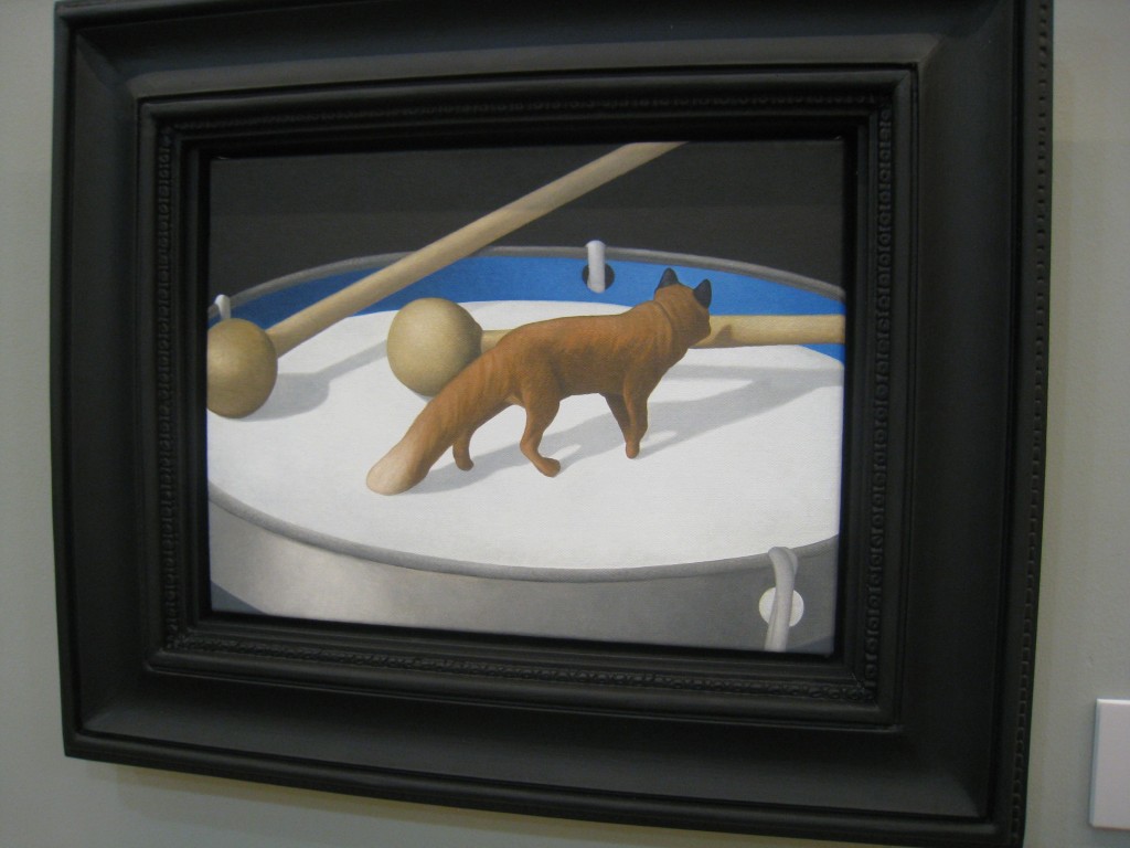 You don’t need knowledge of Thai culture to appreciate Natee’s work, though. Most of these small pieces in Finale beckon the viewer to examine them up close, to appreciate Natee’s skill at painting still lifes.