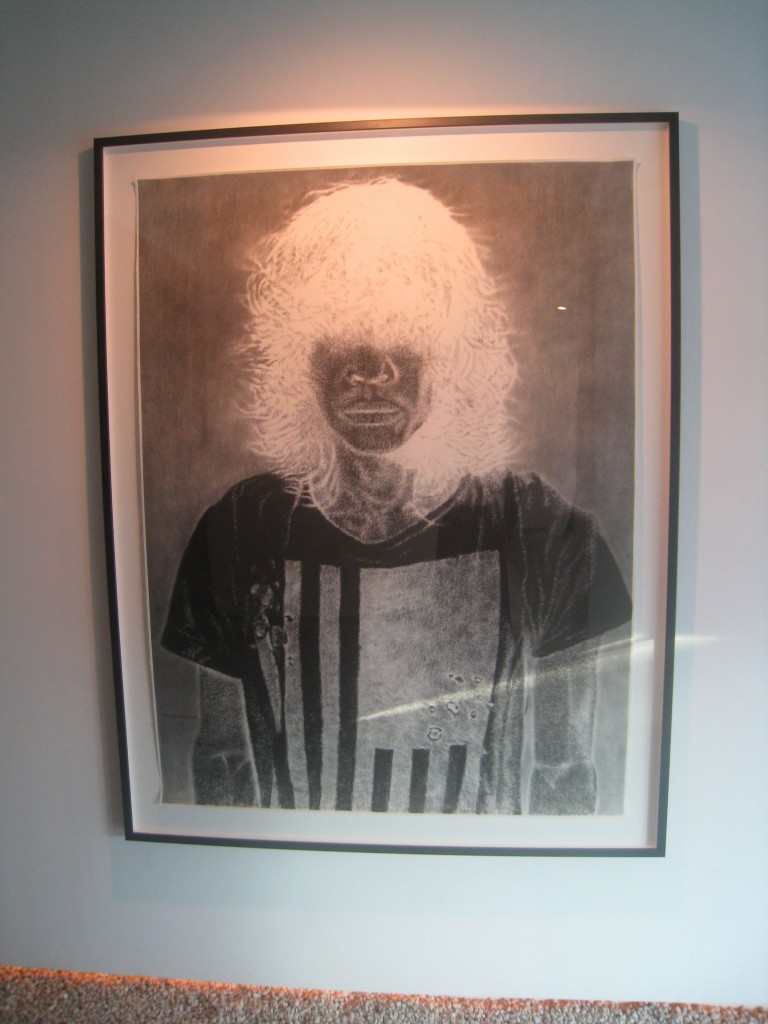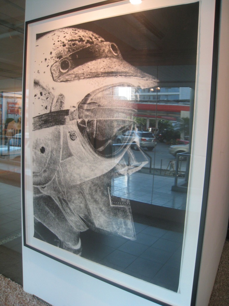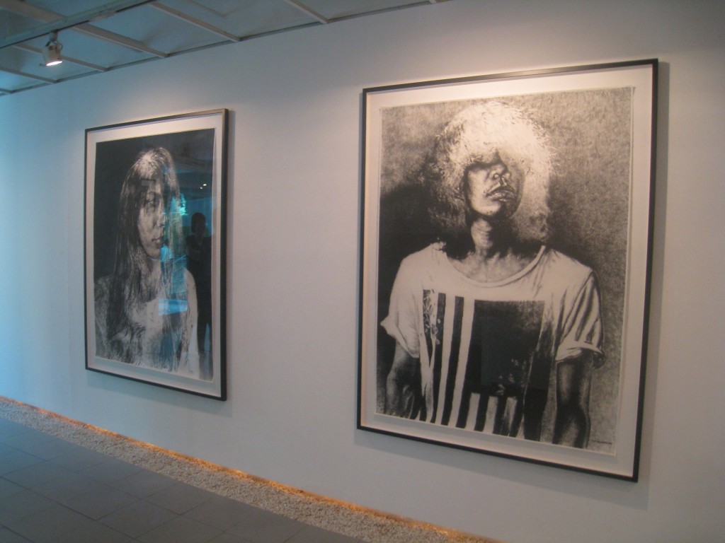 In Circa Circus, he exhibits six large drawings, five of them works on paper and one striking piece on canvas. I’ve always thought Kiko’s drawings trump his paintings. With the scale of his work magnified to fit 5 ft. x 4 ft. sheets (154 cm. x 122 cm.), I see no reason to think otherwise. He has stuck to what he does best— portray the blasé urbanite. Kiko’s current pieces may have toned down from the racy party scenes he documented a decade ago, but his subjects display the same stylish aloofness. He has rendered his city dwellers in negative images, a direction he first attempted for his works in Art Stage Singapore in January. Or perhaps, that’s where I first noticed the shift.