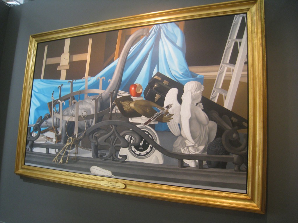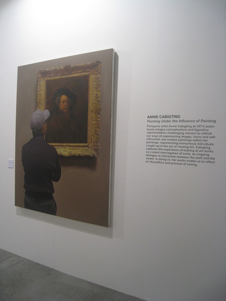 Easily one of the fair’s most popular booths, Finale mounted a solo exhibit by Annie Cabigting. In Painting Under The Influence of Painting, Annie continues with her series of oil on canvas pieces depicting anonymous viewers gazing at well-known masterpieces. I’ve seen many of Annie’s other works in this vein, but I have to say she outdid herself with this batch. I especially liked My Grotesque (After Cordero), her recreation of a Louie Cordero painting. Annie also proved in great demand with the art press, a favorite subject for interviews by television crews and publications doing the rounds of the fair.