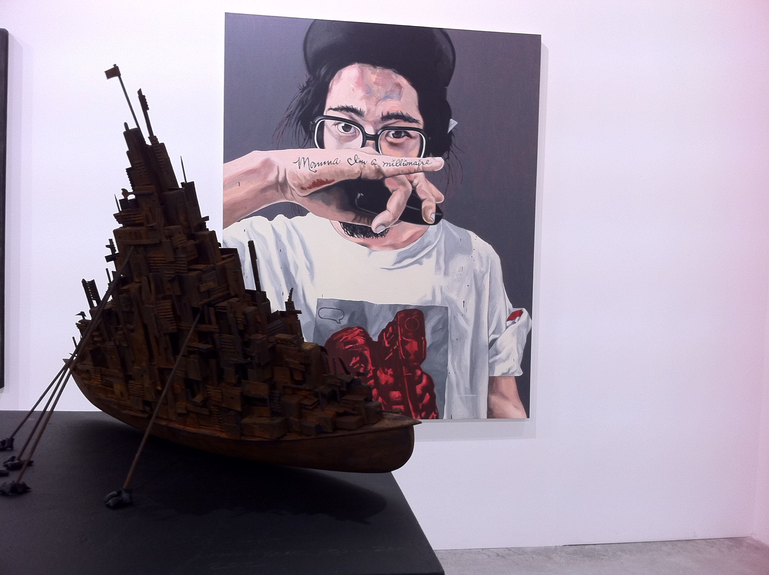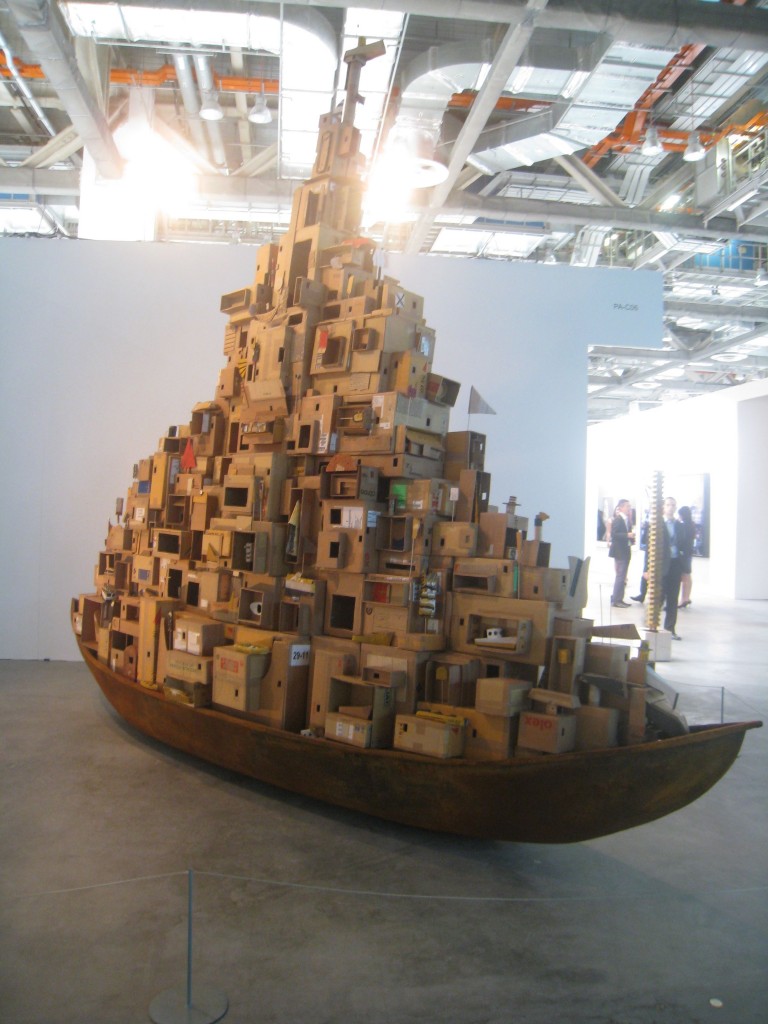 The art fair brochure describes the Public Art & Special Projects section as realized in cooperation with various exhibitors and artists. I thought the organizers should have followed the example of ArtHK on how these large-scale pieces could be used to break up the main exhibition area instead of relegating them to sides and the rear of the hall. They seemed almost accidentally placed rather than highlighted. Among them, Alfredo and Isabel Aquilizan’s In Habit, a towering boat reworked from their piece from the 2010 Liverpool Biennale. Paging the Singapore Art Museum! You must acquire this piece for your permanent collection!