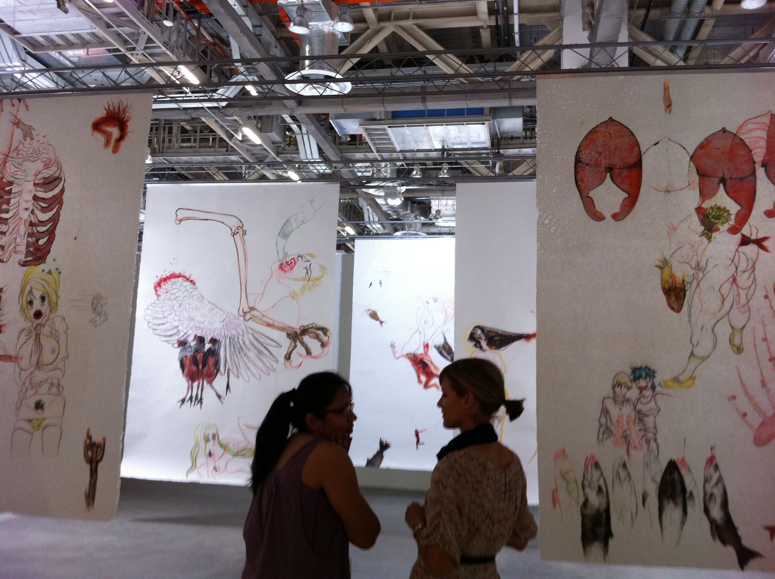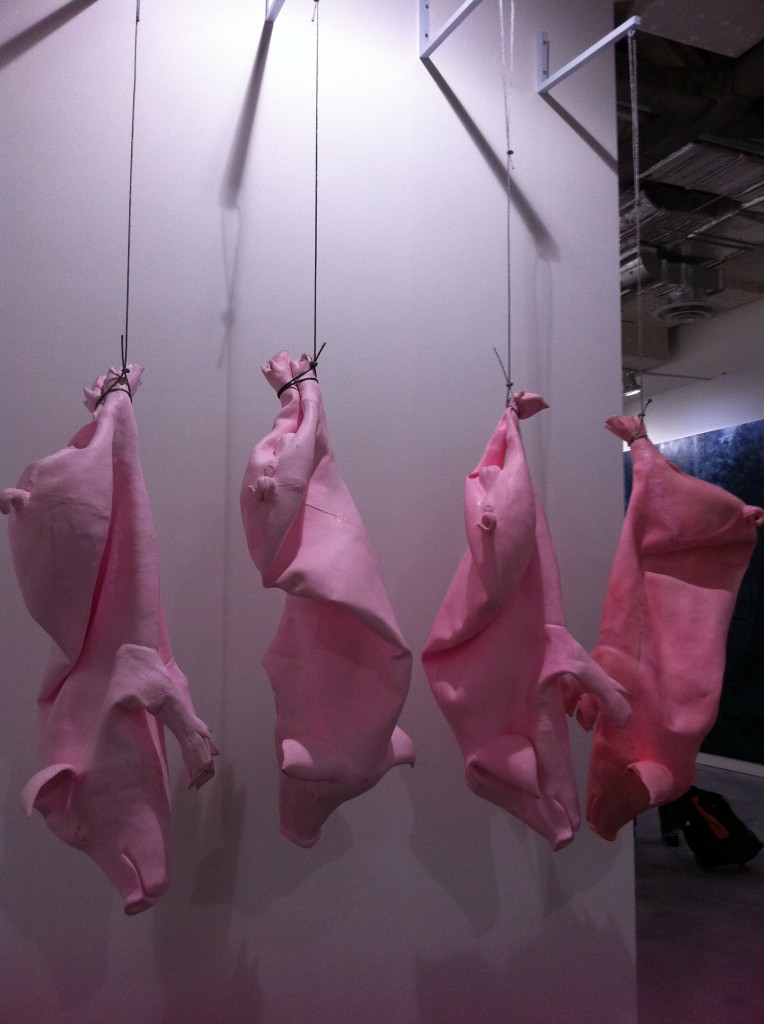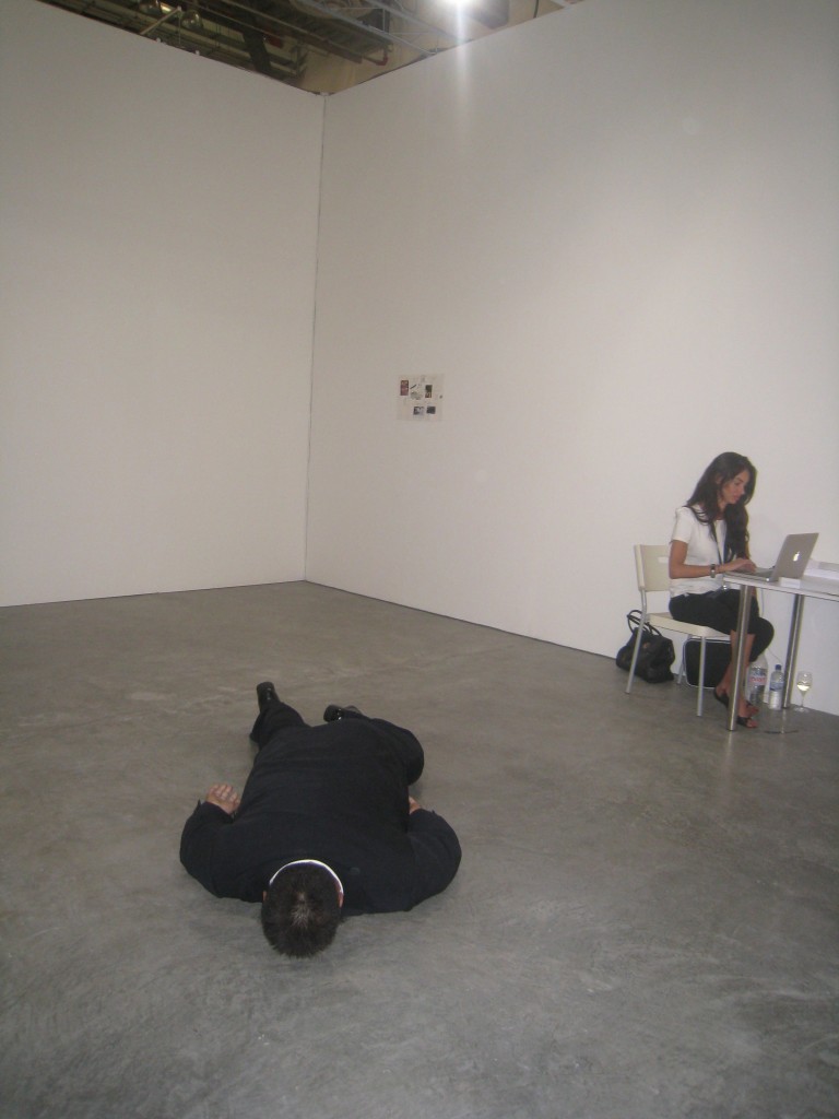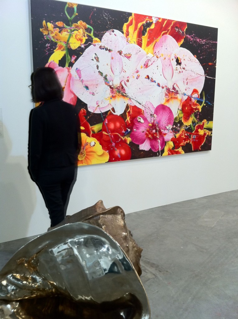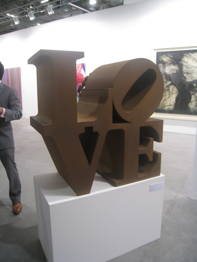 The powerhouse galleries like White Cube, Victoria Miro, and Marlborough opted for sedate pieces from their stable of artists. Galerie Perrotin and Haunch of Venison chose well, featuring artists the market could easily relate to. Japanese artist Mr. featured prominently in Perrotin’s space, while Haunch of Venison showed paintings from Indian artist Jittash Kallat, beautiful collages from Tibetan Gonkar Gyatso, and wonderful lace-covered porcelain animals from Portuguese Joanna Vasconcelos. While these don’t count as Vasconcelos’ most important work, I totally loved the pieces her gallery showed. I hope they bring her bigger pieces next time.