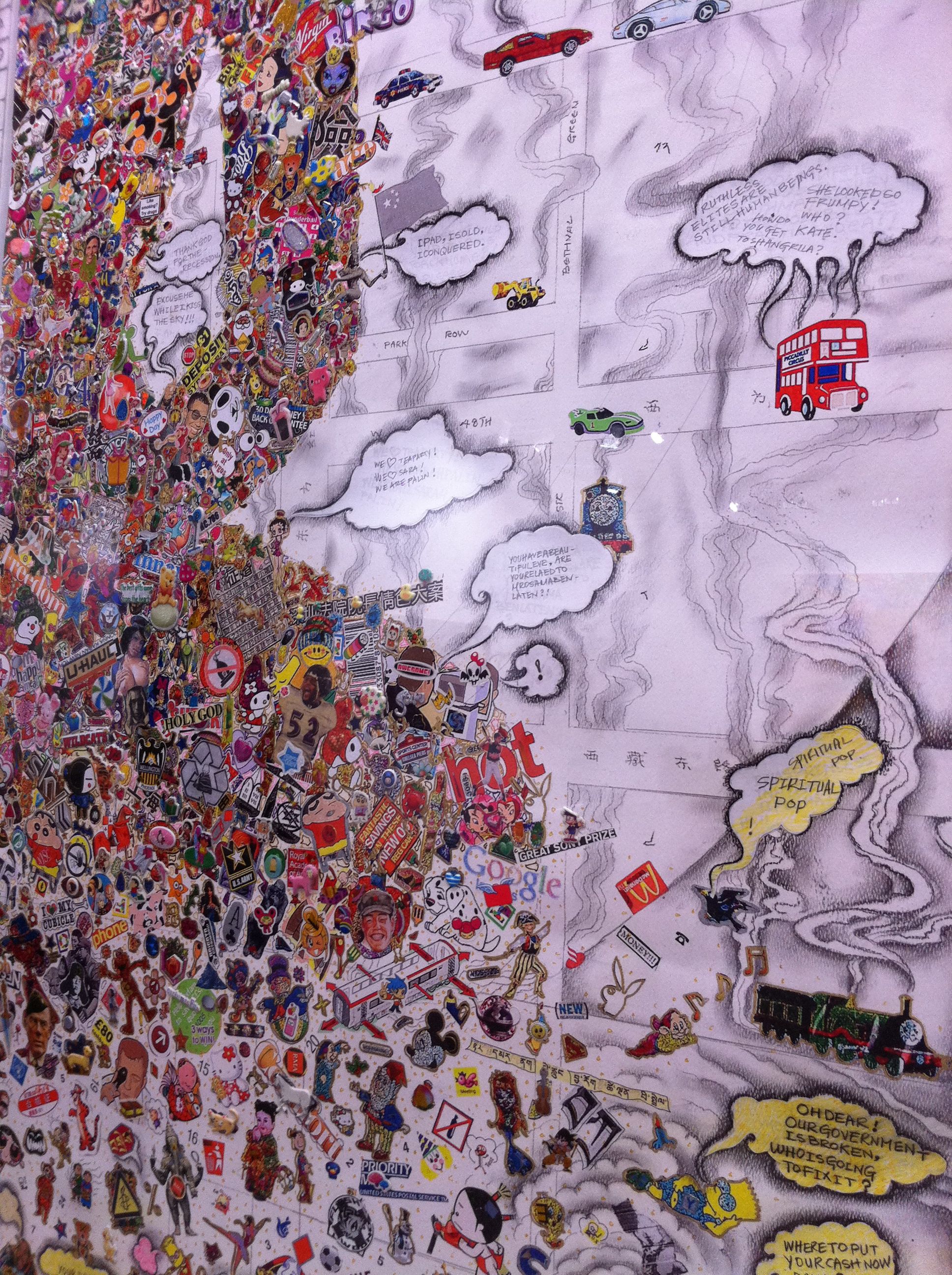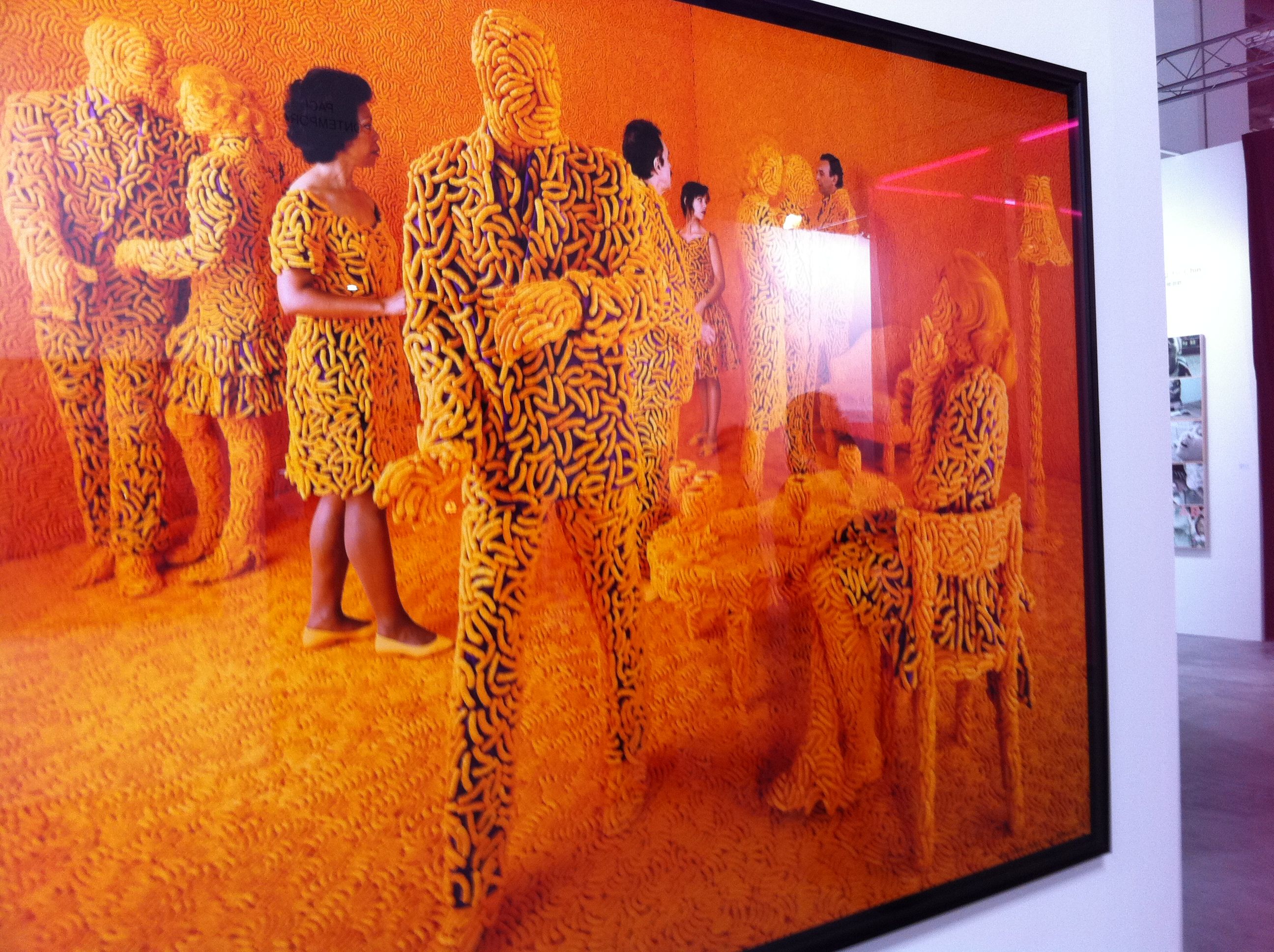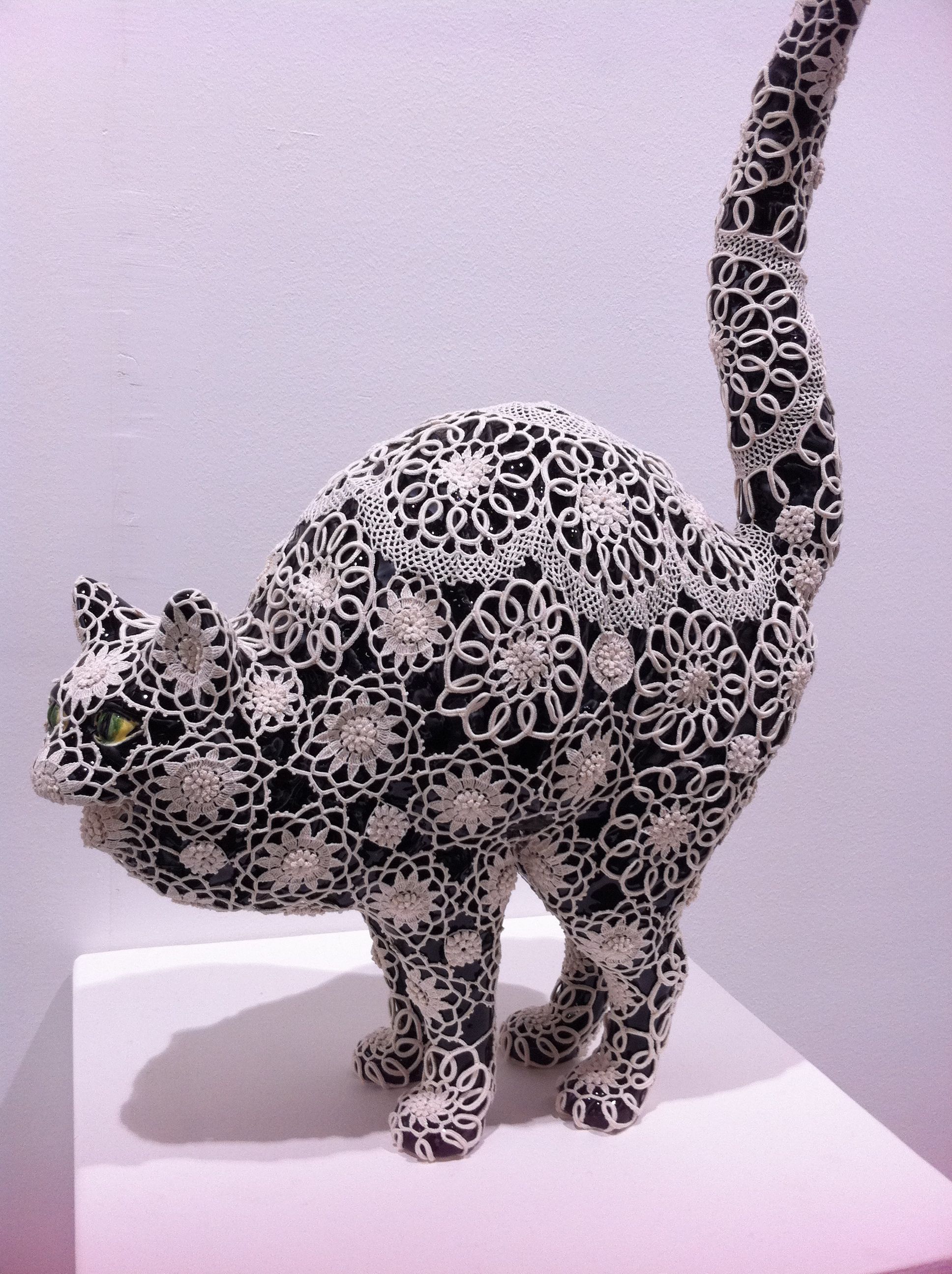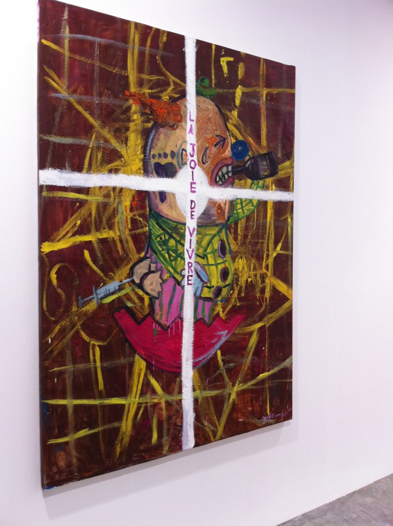 The powerhouse galleries like White Cube, Victoria Miro, and Marlborough opted for sedate pieces from their stable of artists. Galerie Perrotin and Haunch of Venison chose well, featuring artists the market could easily relate to. Japanese artist Mr. featured prominently in Perrotin’s space, while Haunch of Venison showed paintings from Indian artist Jittash Kallat, beautiful collages from Tibetan Gonkar Gyatso, and wonderful lace-covered porcelain animals from Portuguese Joanna Vasconcelos. While these don’t count as Vasconcelos’ most important work, I totally loved the pieces her gallery showed. I hope they bring her bigger pieces next time.