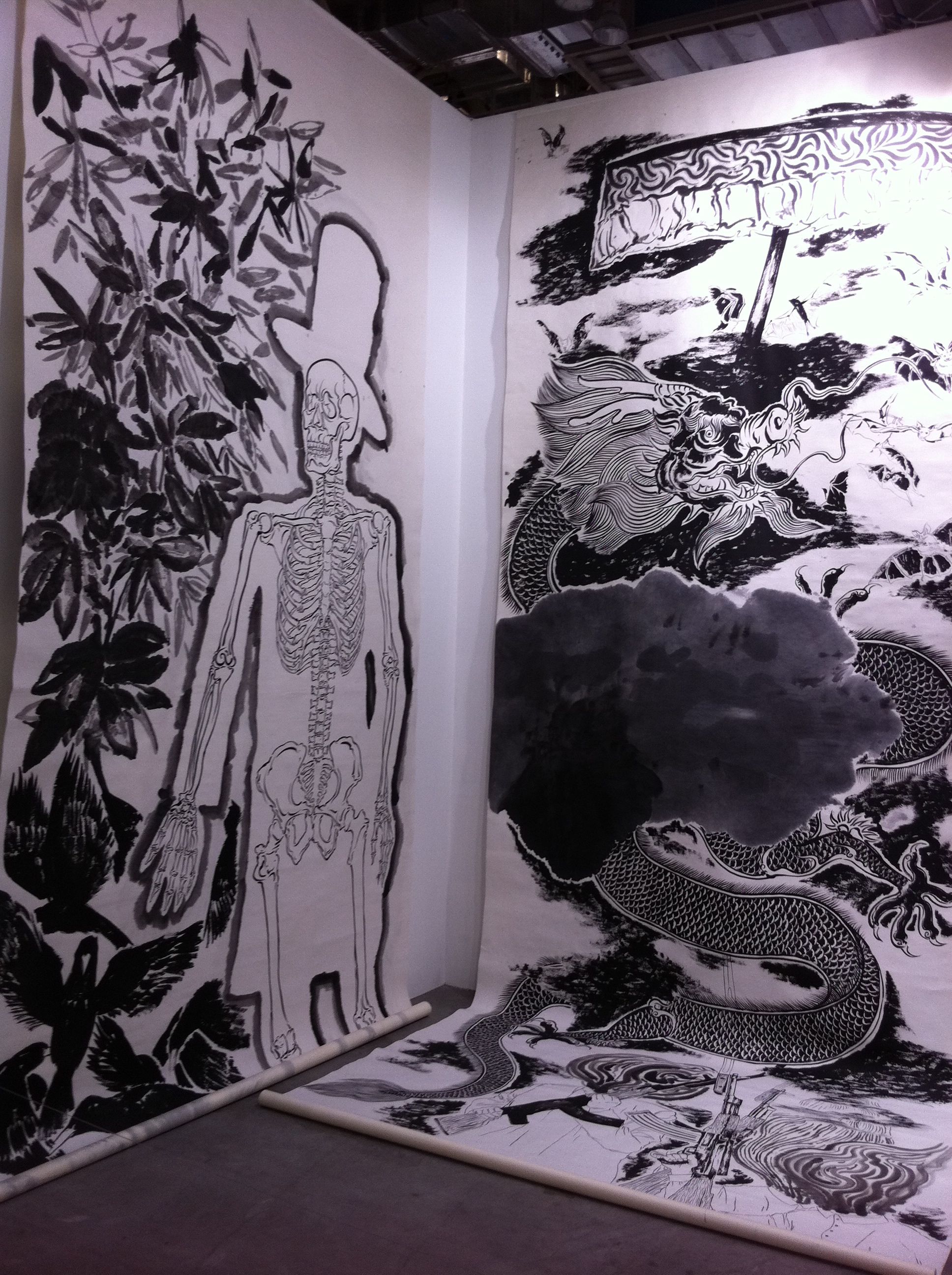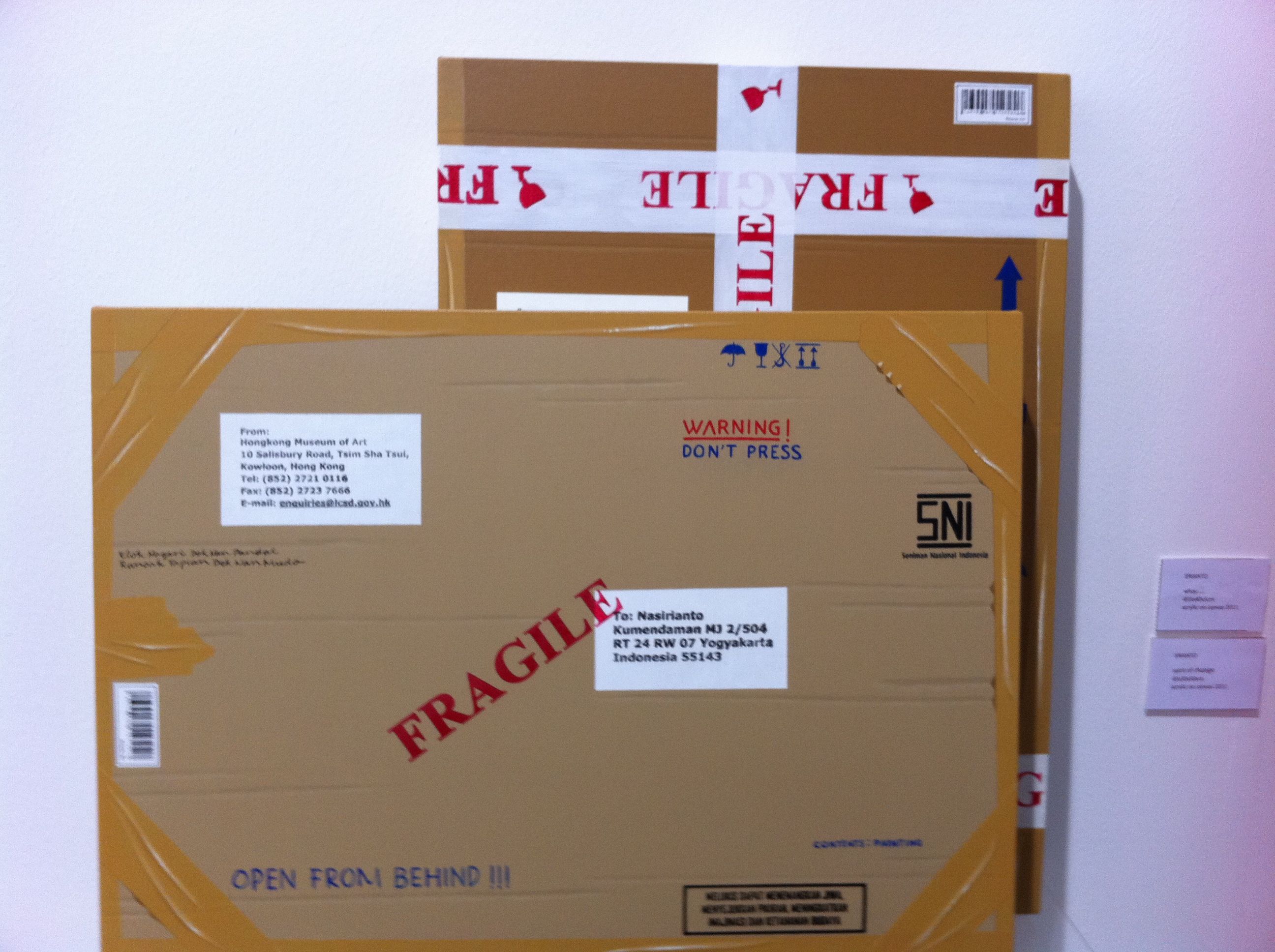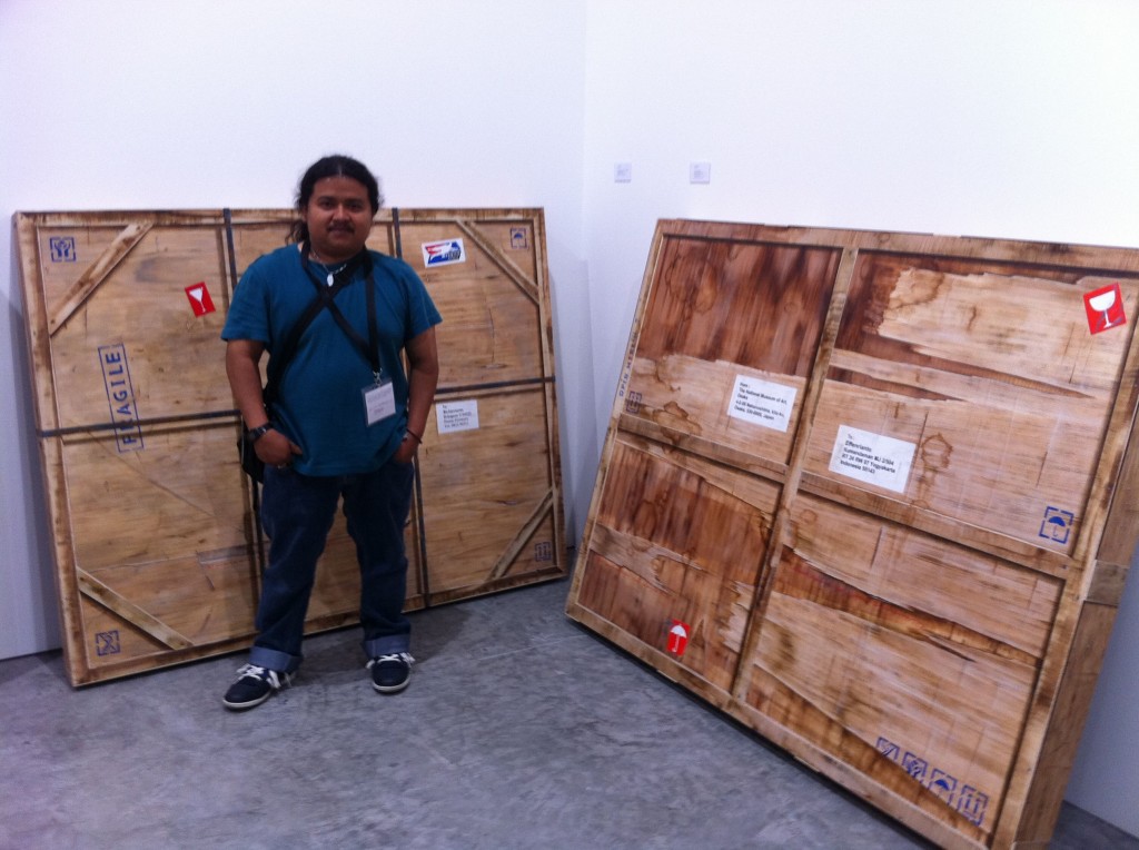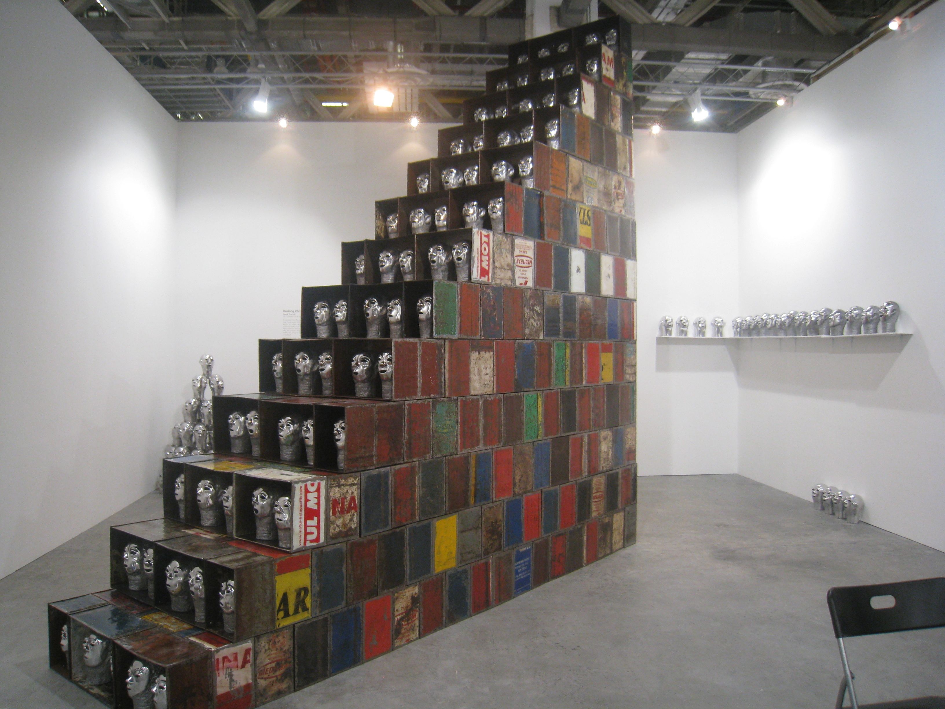 Chinese artist He Xiangyou killed off Ai Wei Wei at Pearl Lam Galleries, fabricating the controversial artist’s likeness lying face down on the floor. Malaysian artist Shooshie Sulaiman converted 12 into a functioning studio where you could have your photographs taken by an old fashioned pinhole camera. Kedai Gambar Goldie No. 12 is based on a studio in her hometown in Johor that still operates to this day. 10 Chancery Lane Gallery from Hong Kong featured figurative paintings from half-Filipina artist Maya Hewitt. Indonesian artist Yudi Sulistyo built a plane wreckage entirely out of paper, but with the look and perception of heavy metal, down to the most minute details. Another Indonesian artist, Erianto stacked painted canvases that simulated packed crates inside D Gallerie’s space.