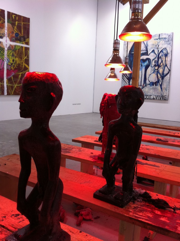 Philippine art made its presence very strongly felt. The Drawing Room, silverlens, and Finale Art Gallery had spaces in the main Galleries section. The Drawing Room debuted a piece from Riel Hilario’s new series of sculptures incorporating Ilocano furniture traditions. Also on view: a strong Kawayan de Guia diptych, several Lirio Salvador guitars, paintings from Troy Ignacio and Kiko Escora, a maquette from Alfredo and Isabel Aquilizan, photos and sculpture from Diokno Pasilan and Mark Salvatus.