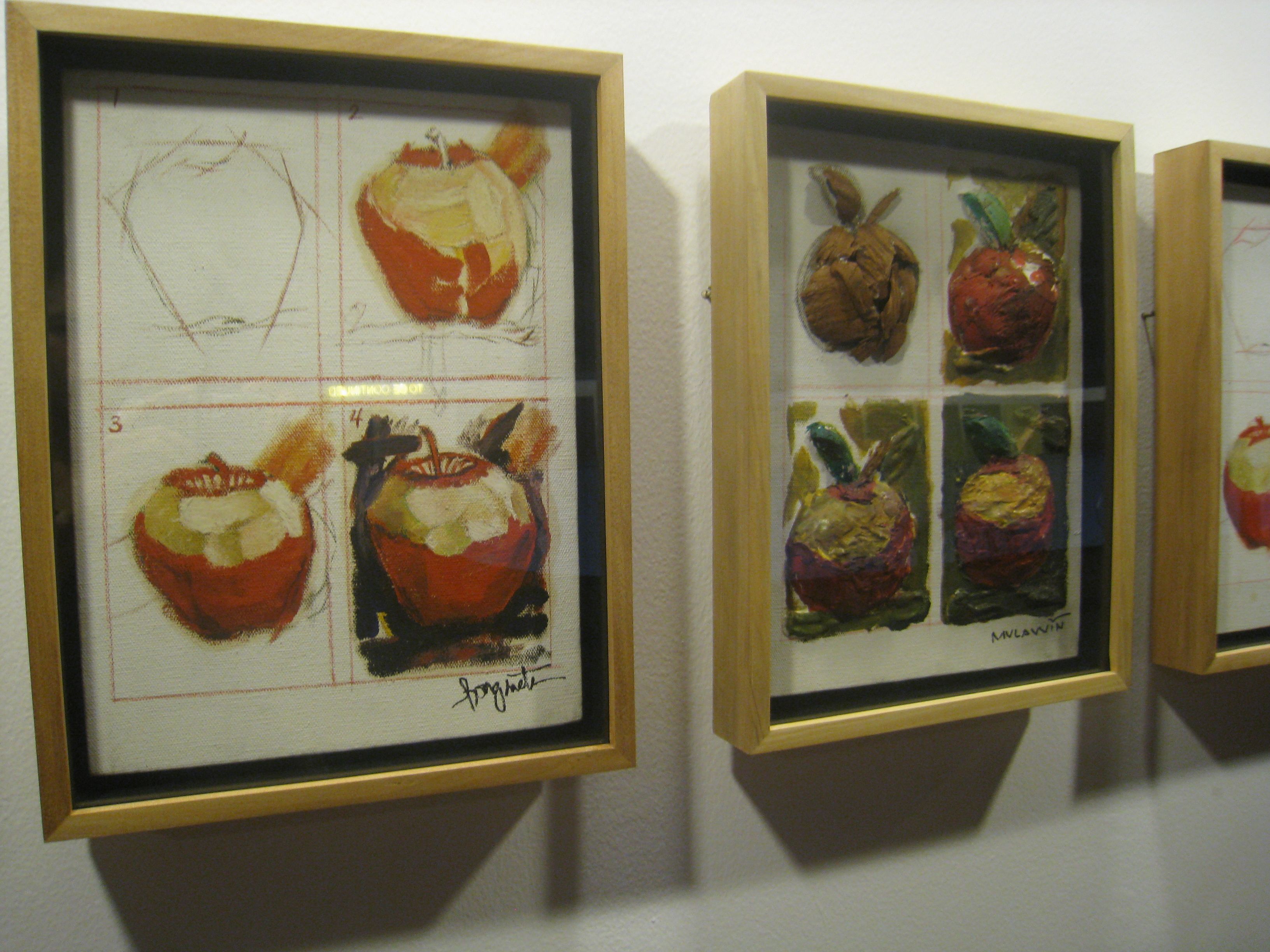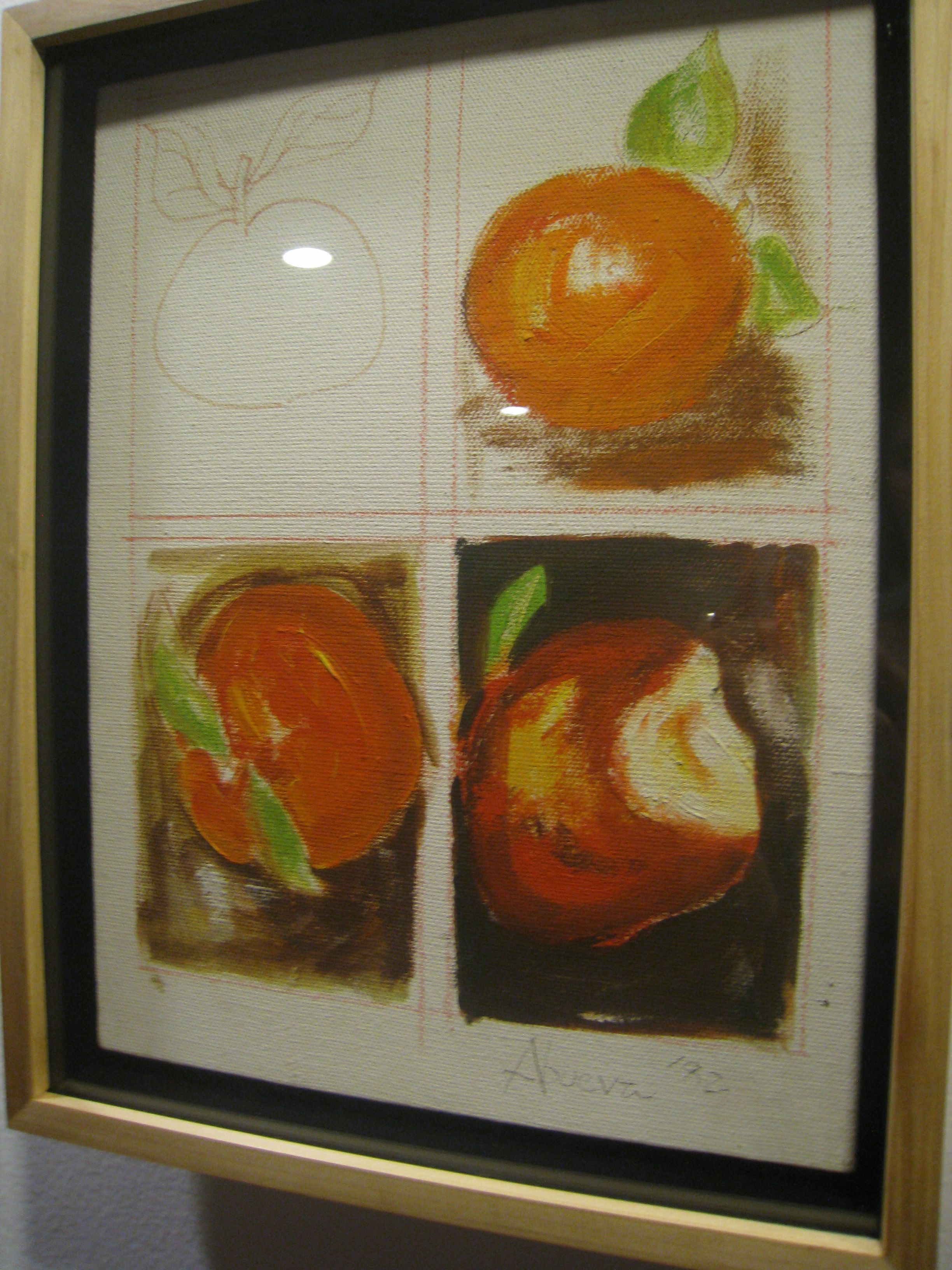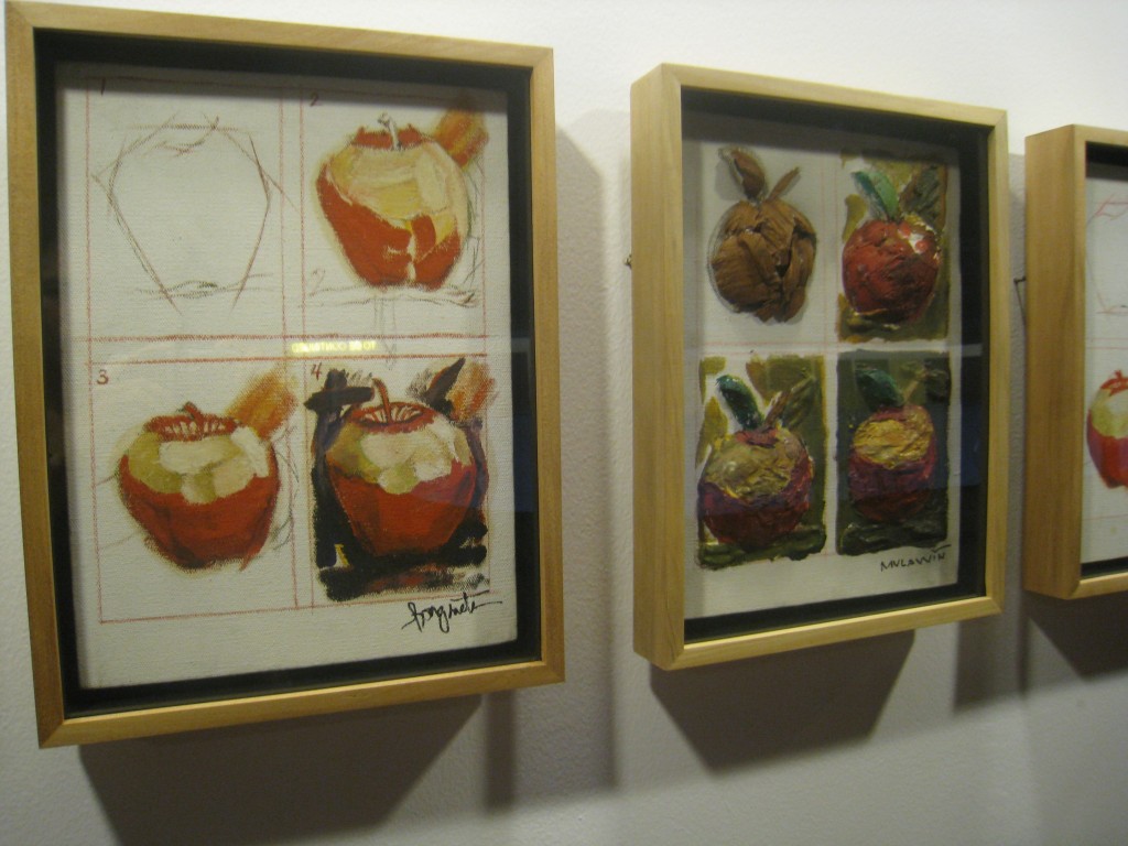Across the hall, more then forty framed works display the results of Apple Painting Lesson. Individual artists created their own versions of painted apples following a four-step instructional guide. A walk down the corridor will yield surprises. Participants include names from Mr. Chabet’s own generation, prominent artists like Napoleon Abueva, Danilo Dalena, Romulo Olazo, along with his students, Romeo Lee, Nilo Ilarde, Soler Santos, Agnes Arellano, Marcel Antonio.