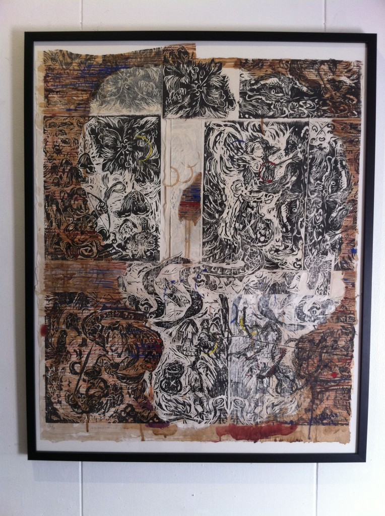 Also on view: Eugene Jarque’s collage on paper, Drifter and a collaborative piece from Buen Abrigo, Dean Africa, and Antares Gomez Bartolome called Lunan.