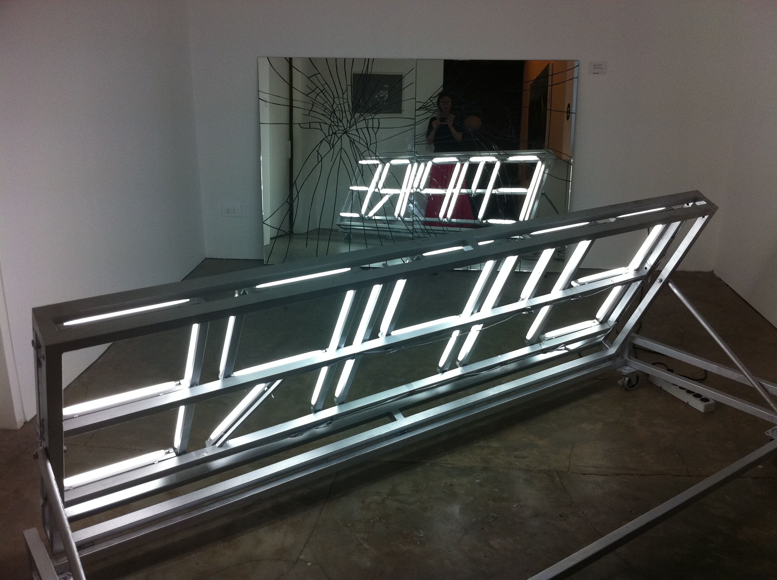 Empire is the name of the exhibit’s centerpiece, the word spelled out in fluorescent lights. The sculpture dominates the small alcove where the show is mounted, as it should. After all, empire does not connote the puny or the meek.