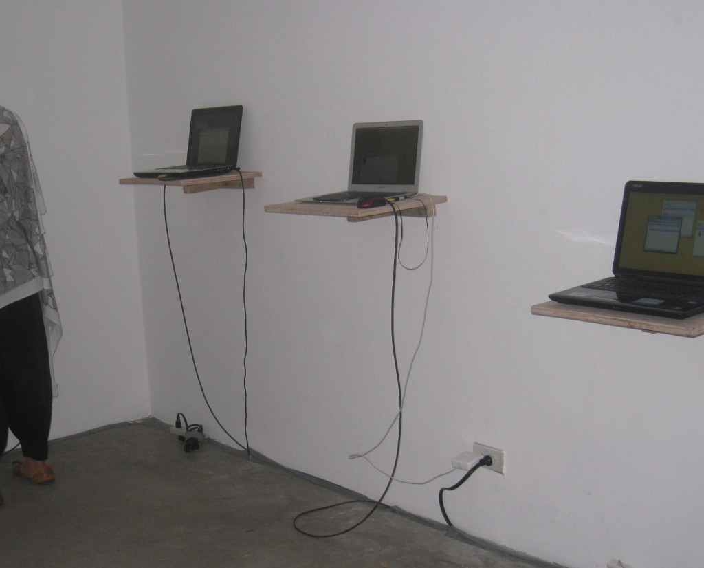 The heart of the exhibit, however, lies in the gallery’s small Project Room where Poklong and Lani have arranged several computers on shelves.  Each one carries sound recordings inspired by indigenous Filipino music from the library and archives of Dr. Jose M. Maceda, National Artist and founder of the UP Center for Ethnomusicology. Viewers can choose from among the recordings, and the sounds come out on speakers scattered around the installation. The melody from a harmonica is meant to mingle with a hammer’s ceaseless pounding, or the crowing of a rooster.  Should one wish to add to the cacophony, one may take sticks to beat against the bamboo. The whole experience is meant to be interactive and spontaneous.