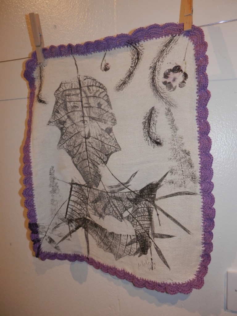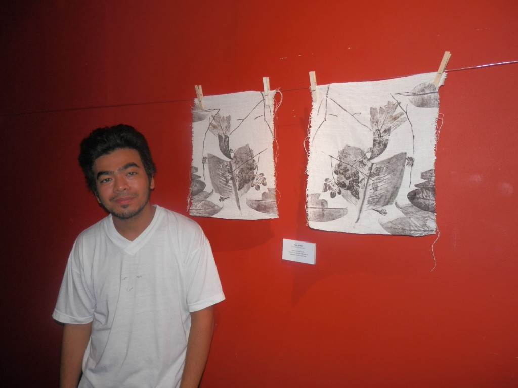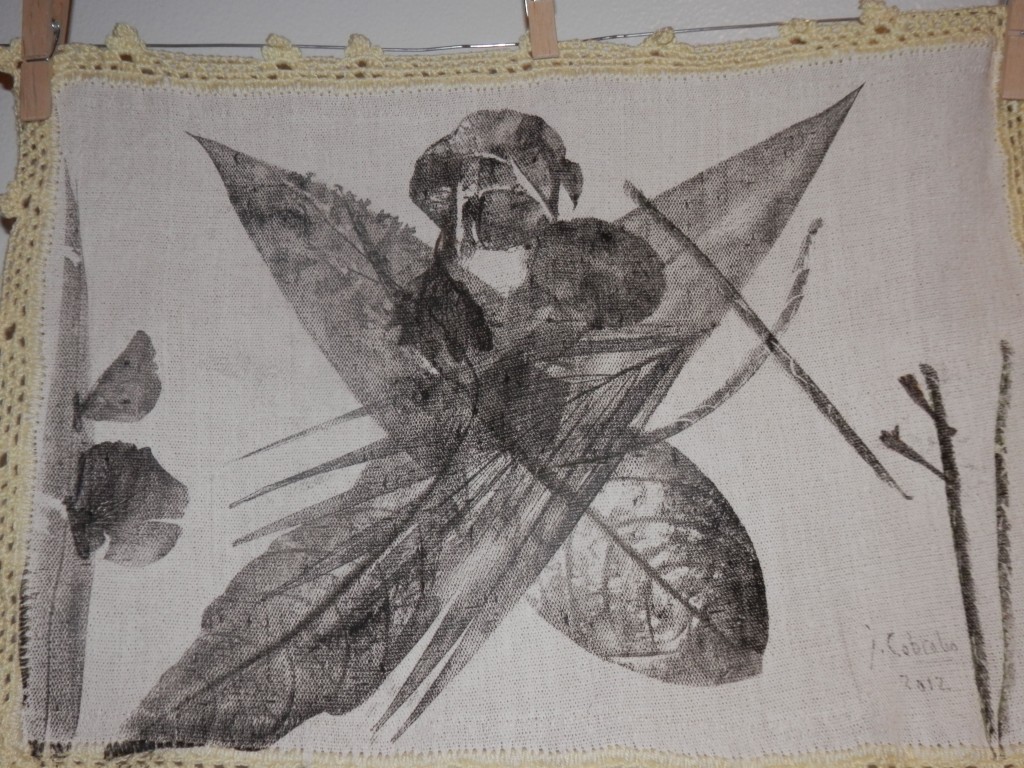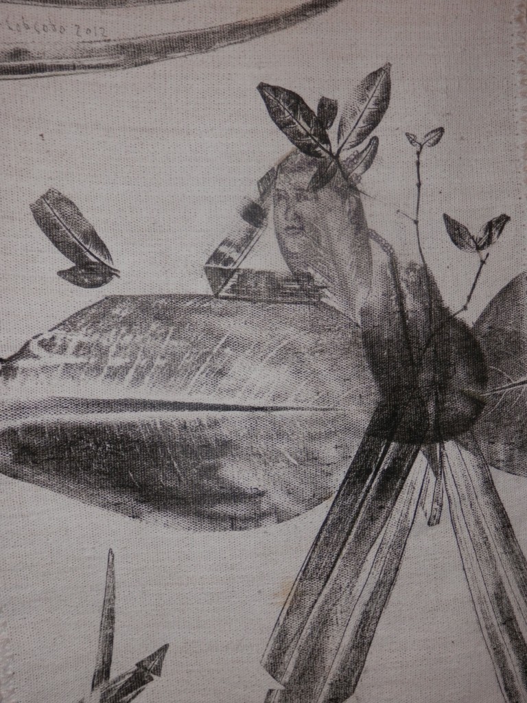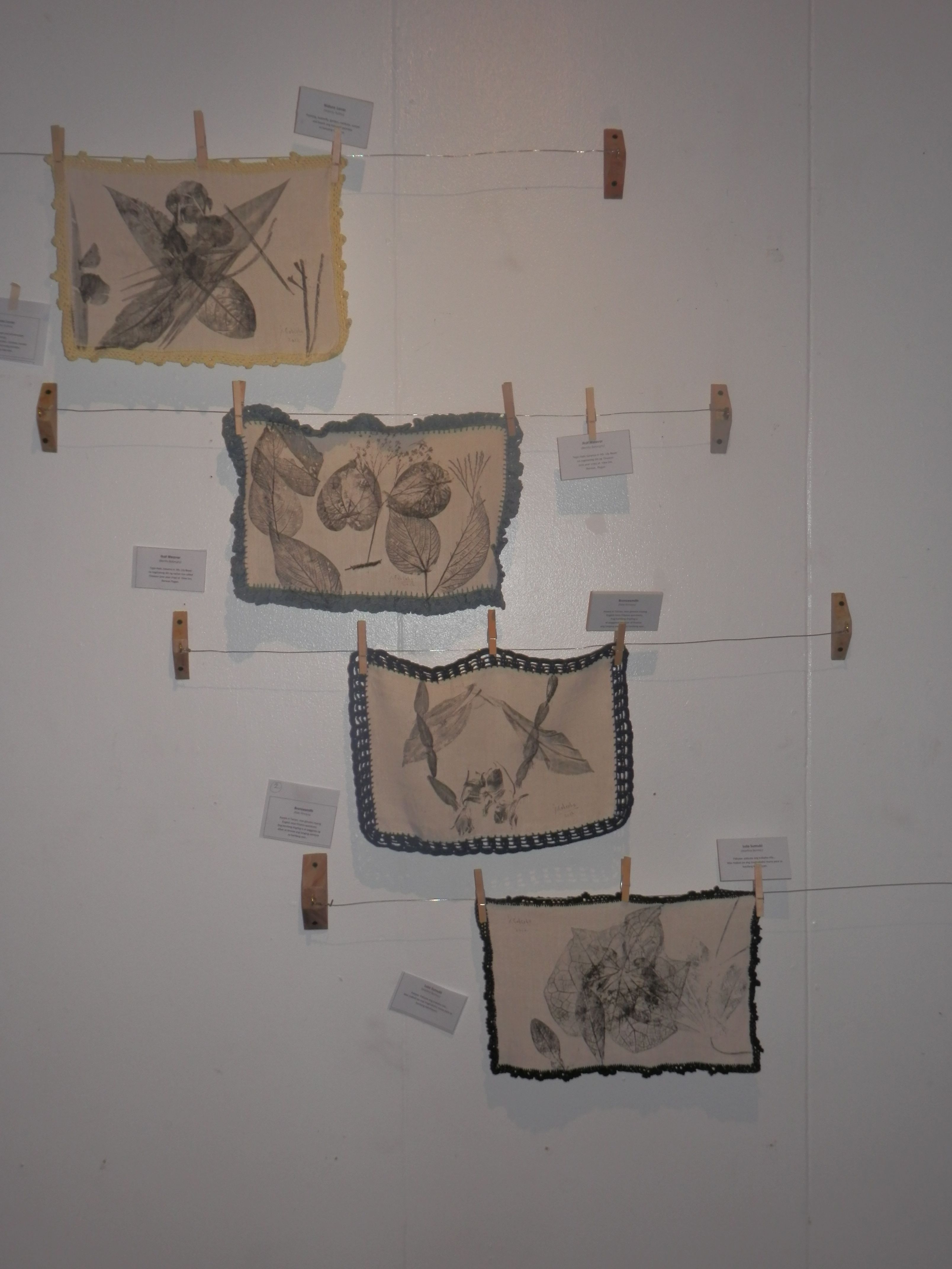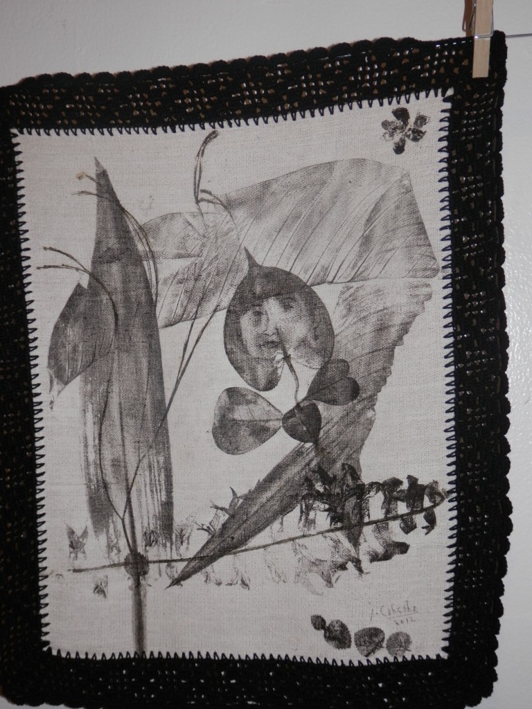 Currently running at Avellana Art Gallery, Lola 101 Part 2 presents more of his conversations with grandmothers, 46 more of them to be exact. This completes his goal of speaking to 101 women, lolas all. After each interview, then as now, Joey engraved portraits of these women on large leaves then printed his impressions onto fabric. Lace crocheted by his mother frames each piece of cloth. The works hang all over the gallery, a jaunty, heartwarming celebration of family love.