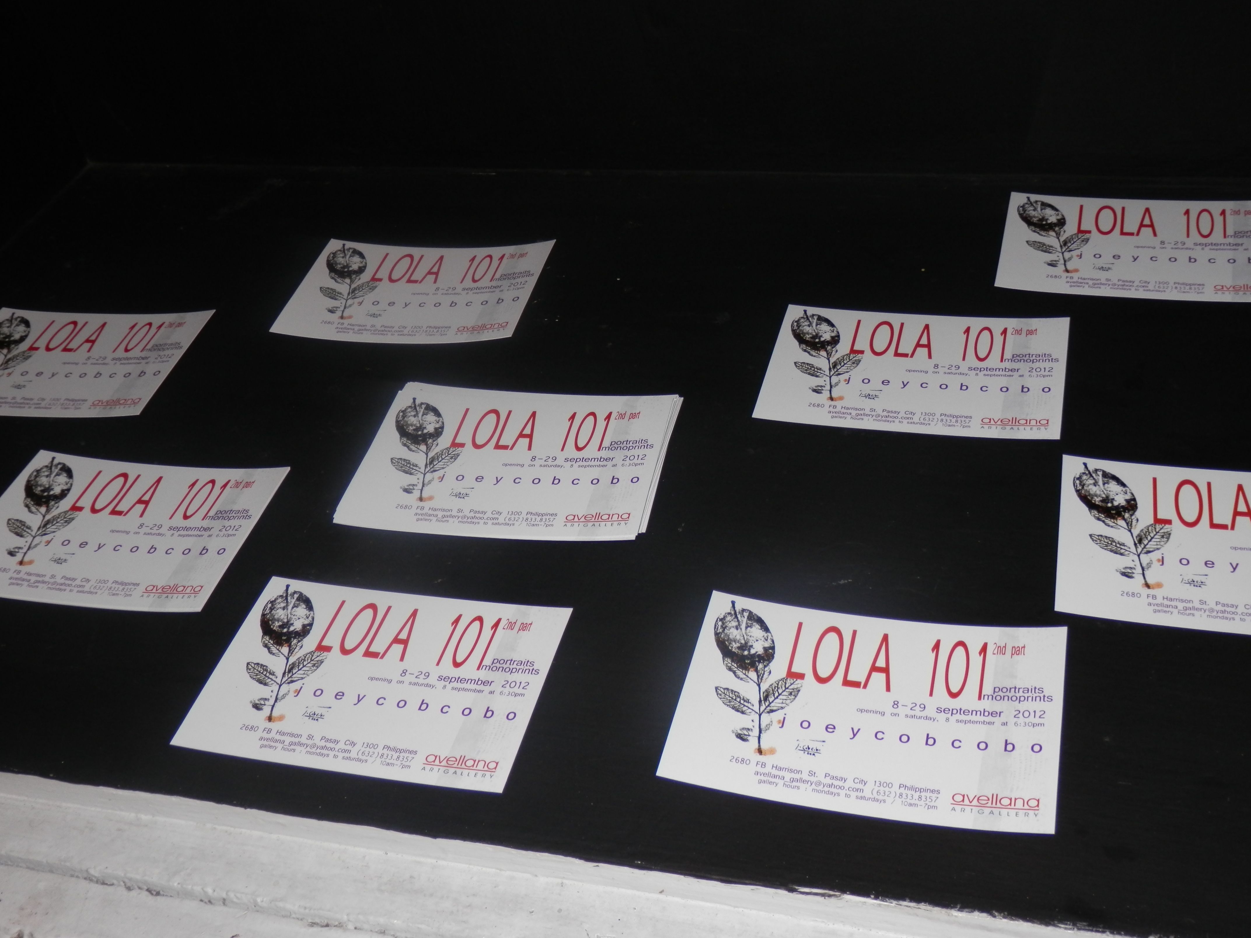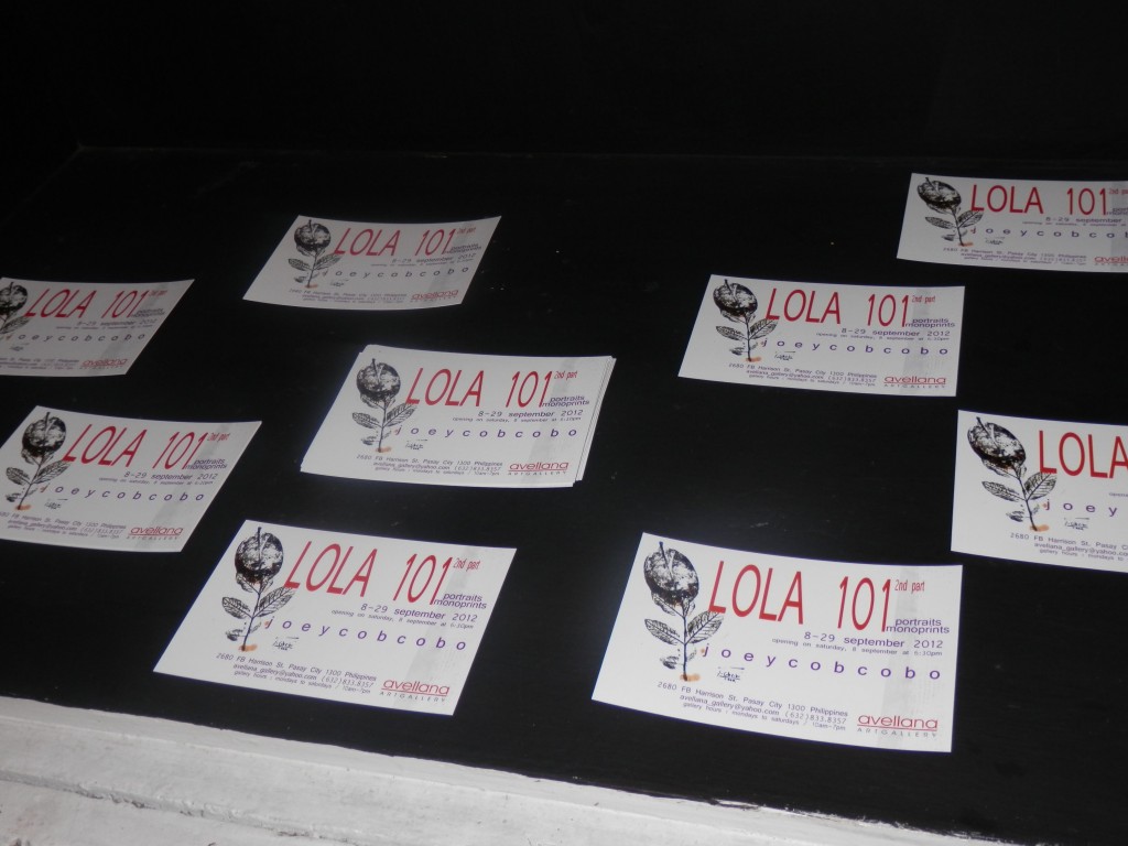 Lola 101 Part 2 runs from 8 to 30 September 2012 at Avellana Art Gallery, 2680 FB Harrison St., Pasay City. Phone (632) 833-8357 or visit https://www.facebook.com/pages/AVELLANA-ART-GALLERY/