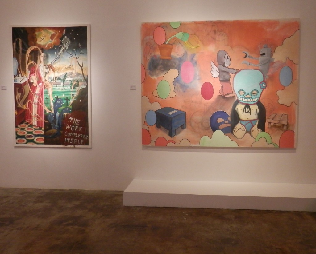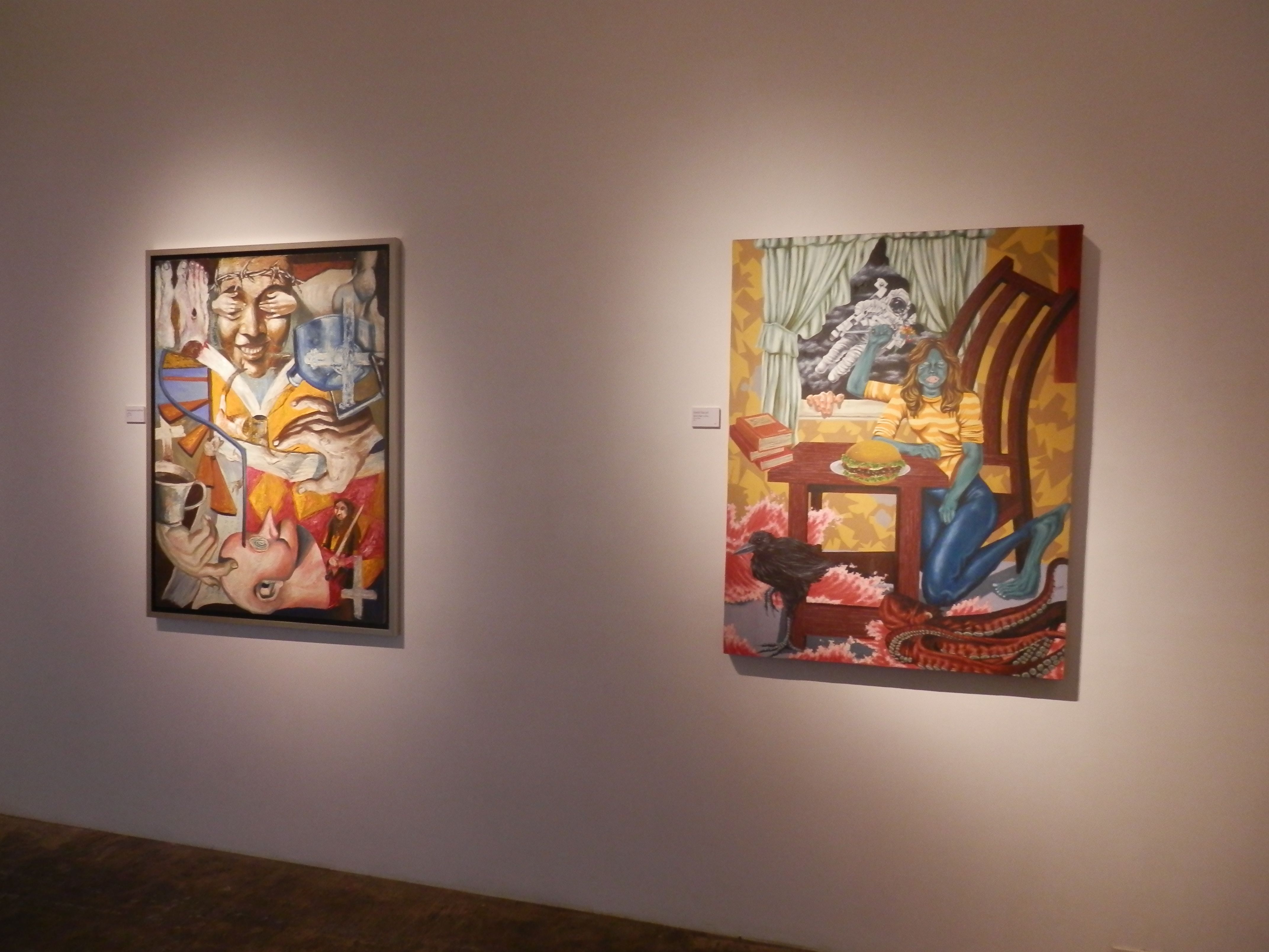 Emmanuel Garibay, Untitled, oil on canvas, 2005 and Redd Nacpil, "Books, Beef, or Boys", oil on canvas, 2011