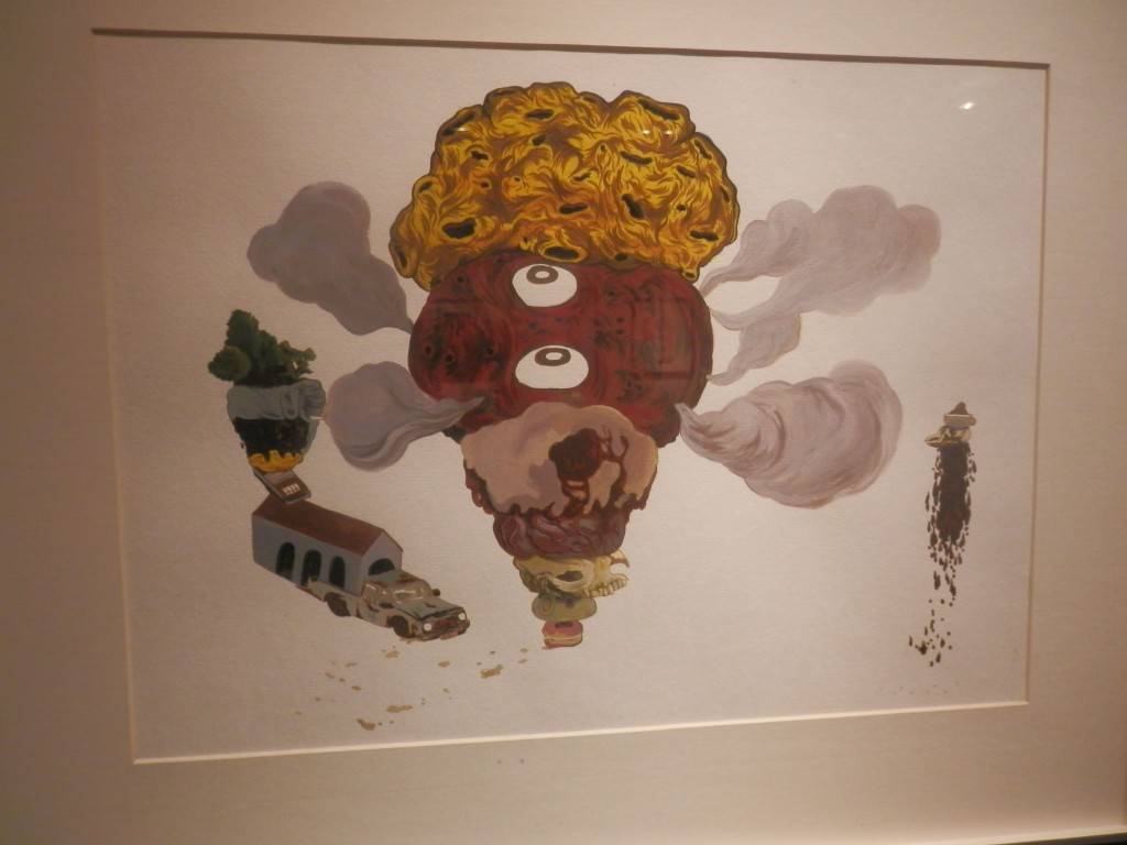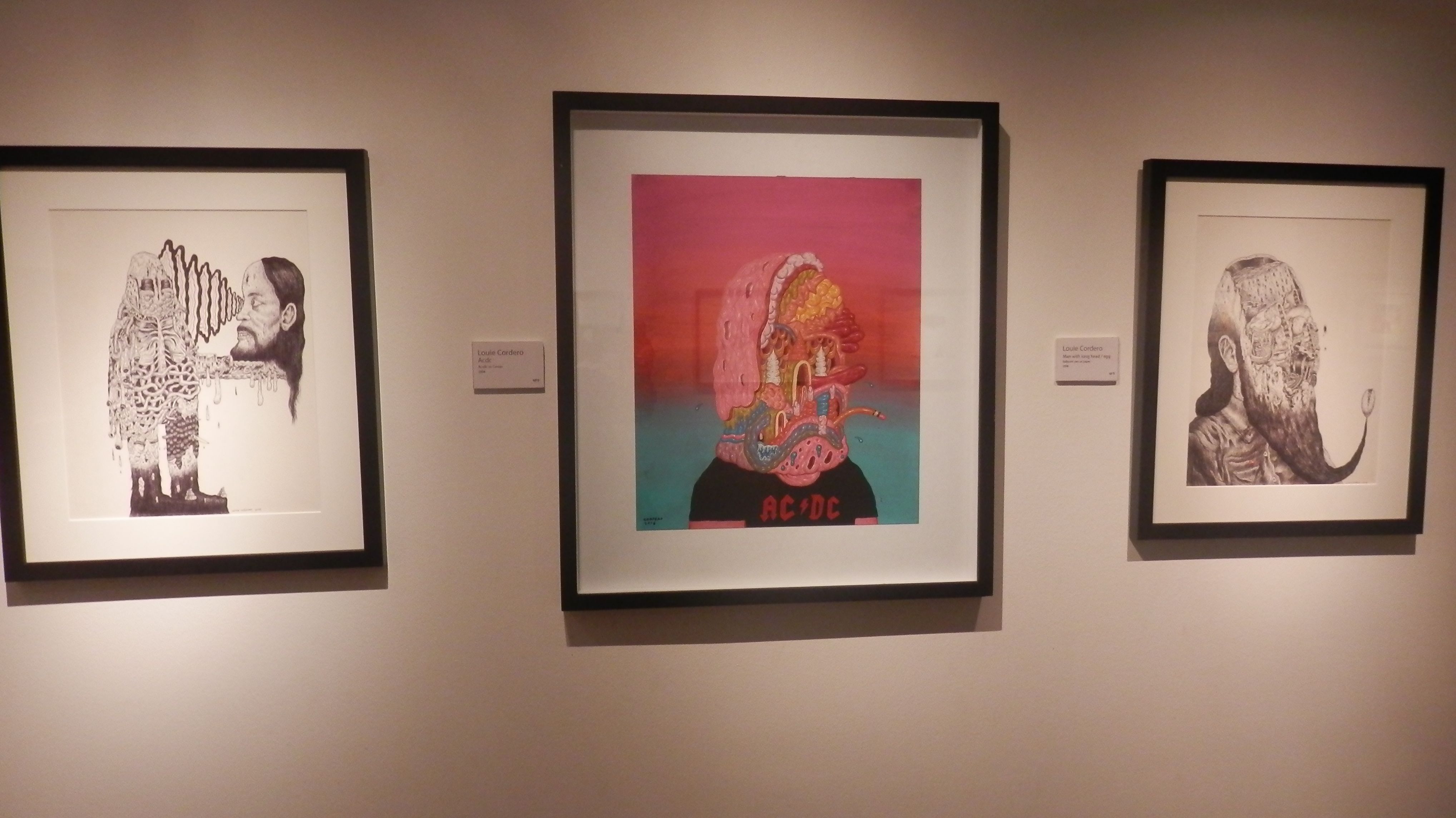 Augmented Minds, now on view at Charlie’s NOVA Gallery in Makati, focuses on paintings, drawings, and collages with a lowbrow slash surrealist bent. It provides an opportunity to revisit work from the recent past, small works that reflect a series or an approach that, for the most part, the artists don’t practice anymore. Notable examples include Mariano Ching’s small drawings from 2007, or Louie Cordero’s works on paper from his 2008 Absolute Horror exhibit at MO Space, and MM Yu’s colorful collages from 2009. Another treat: Manuel Ocampo’s The Work Completes Himself from 2005.