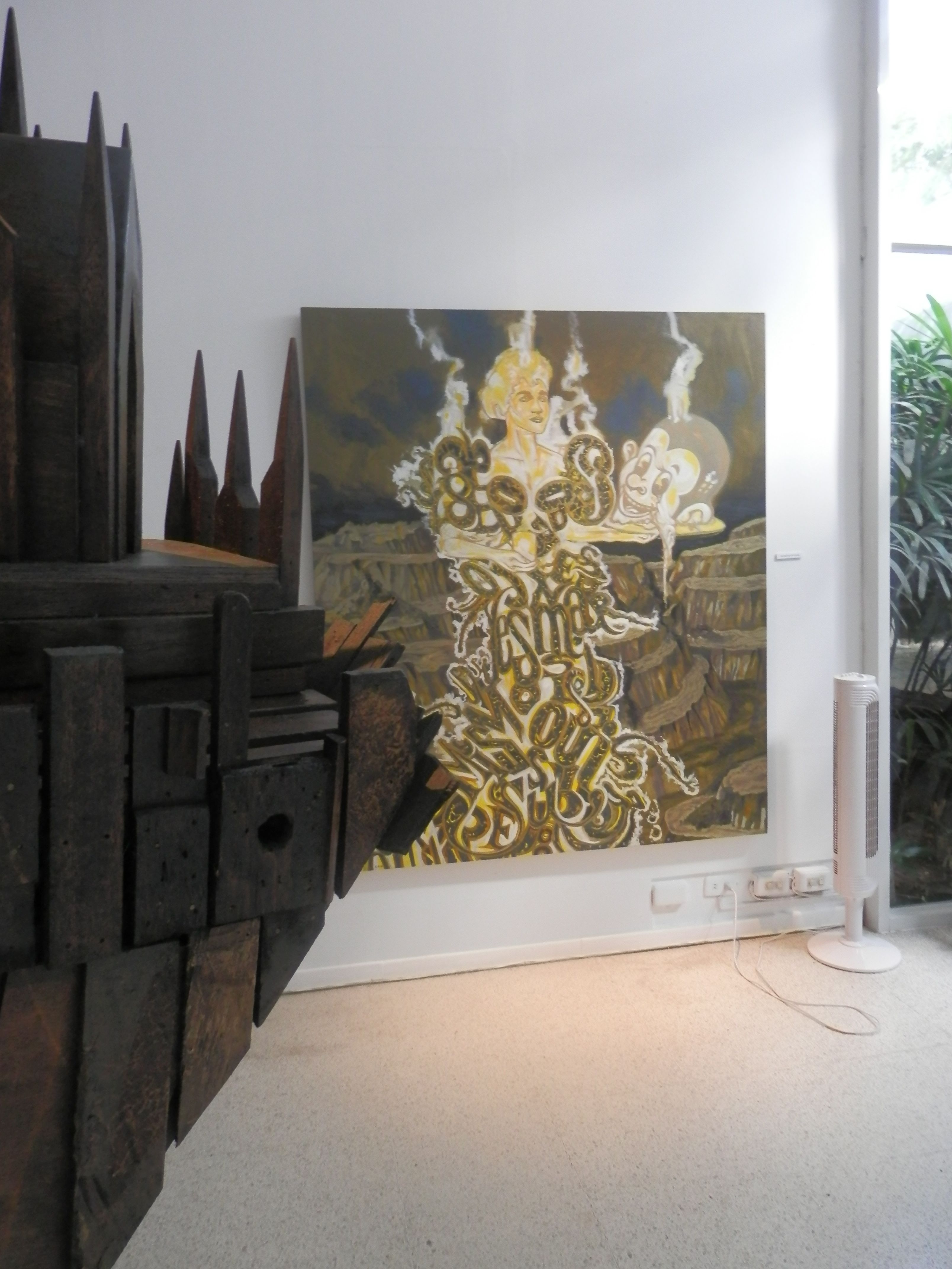 “Of recent, I’ve filtered this thread through several recurrent tropes and have decided to not just yet abandon them, instead mining their variant extrapolations; the kotillions, the sagalas, the bunjeefixions, and the kariton katedrals, all of which enable me to attempt, through 2D and 3D means, to make sense of this long unfolding, oft repeating, lingering narrative which we are fated to be born in and live through.”