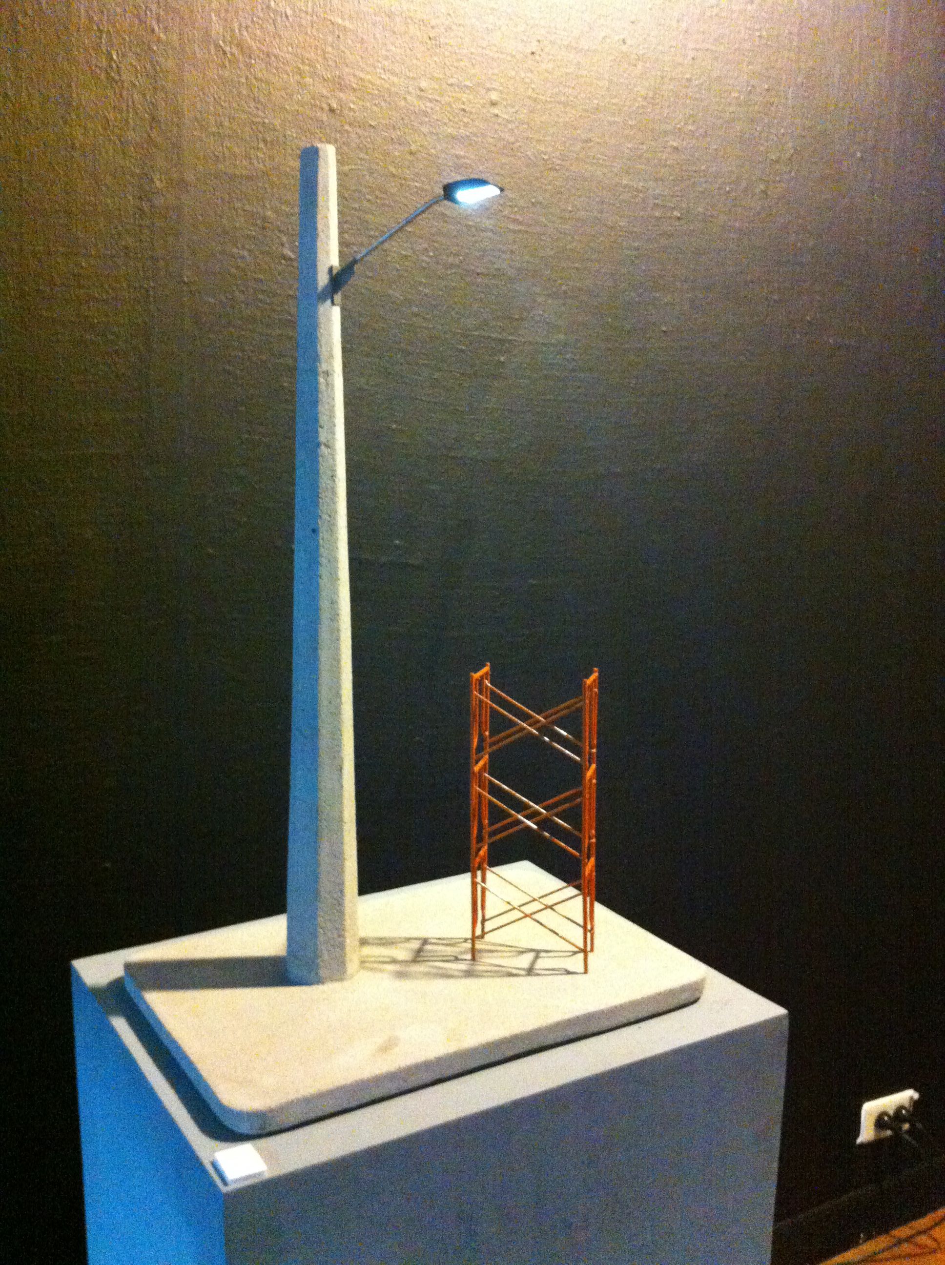 On view as well, at Gallery 2 and 3, functional art from Broke, the design collaboration of Gary Ross Pastrana and Jeremy Guiab. Lamps fabricated to resemble structures such as billboard frames and transmission towers have been set atop stands and scattered throughout the two spaces. The pieces are remarkably delicate in spite of their masculine bent, and are even quite elegant as sculptures. They could benefit from being displayed in a less compact space.