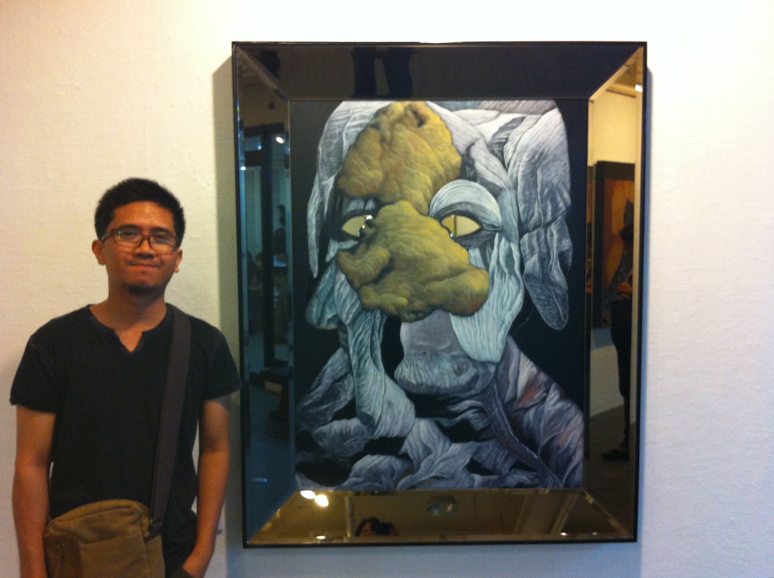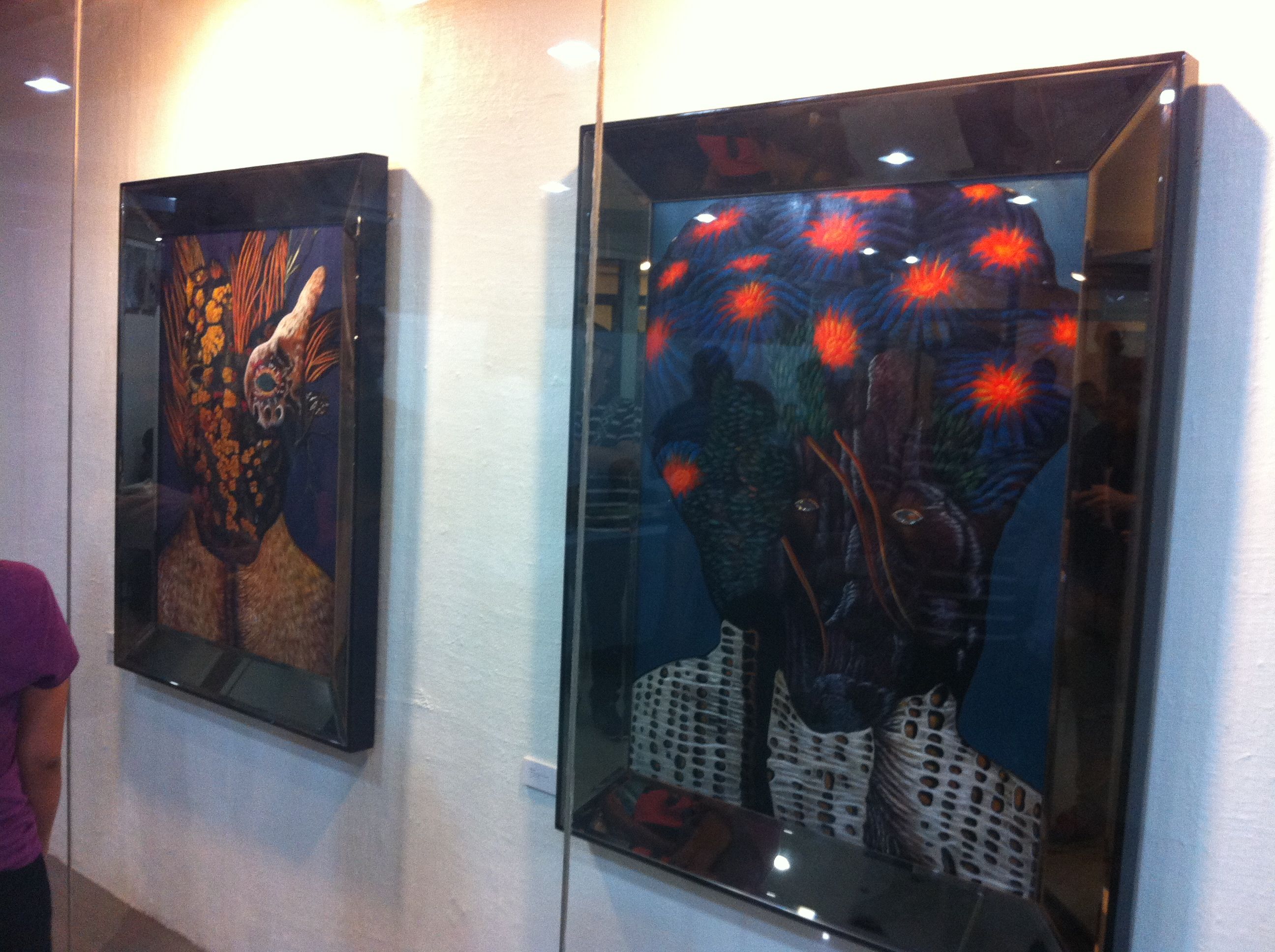 A hankering to revisit those portraits served as impetus to the works now hanging at West Gallery’s Gallery 1. His exhibit, Dieties, marries that desire and his current preoccupation with Filipino folk tales. Rodel’s seven new paintings (uniformly sized at 49.5 x 39.5 inches) depict gods from local lore whose features have been put together from elements that characterize their dominions, somewhat like Guiseppe Arcimboldo’s likenesses formed by artfully arranged fruits and vegetables.