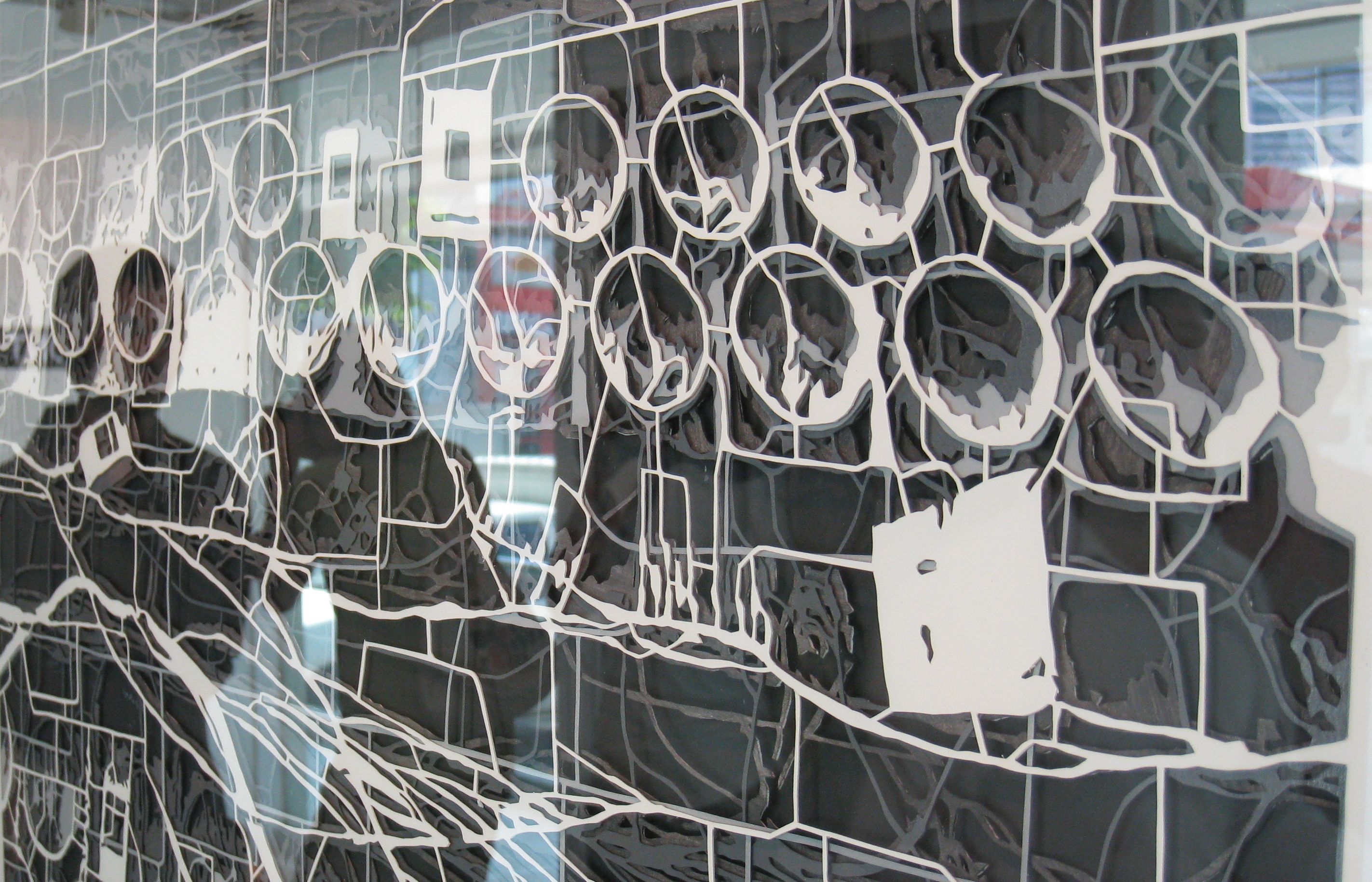 Vermont Coronel has professed his admiration for Logan Hicks, the American stencil artist known for his detailed urban landscapes. Unsurprising then that he has chosen to work with the same medium: layers of meticulously fabricated stencils, traced from his own photos of random city scenes, translated to canvas via spray-painted acrylic. It takes a minimum of three layers of stencils to complete an image, and it takes Vermont a week to create each layer. Continue reading